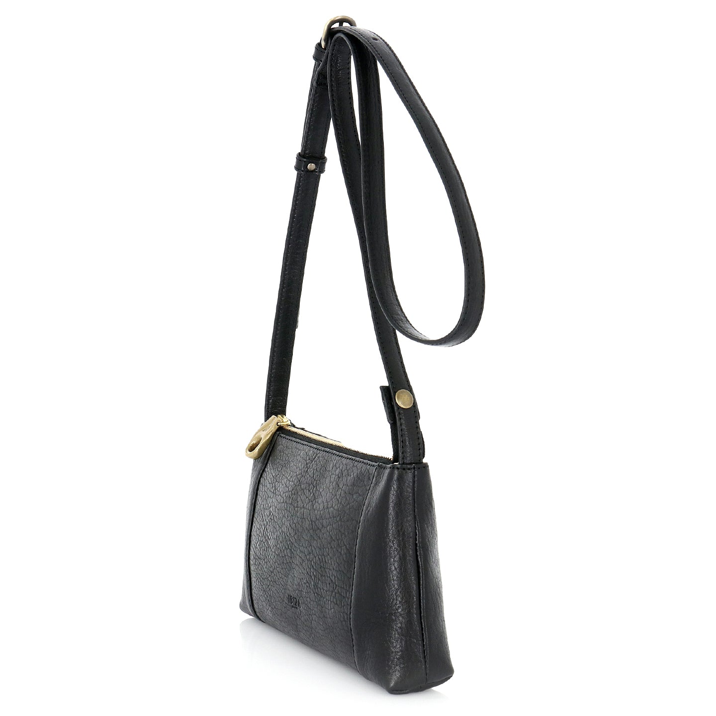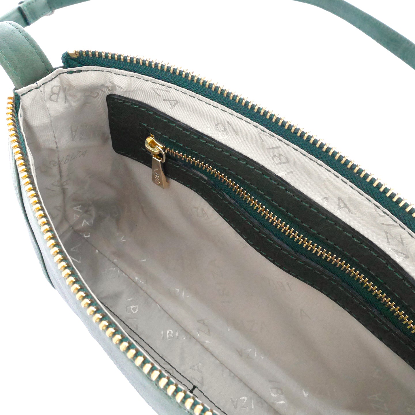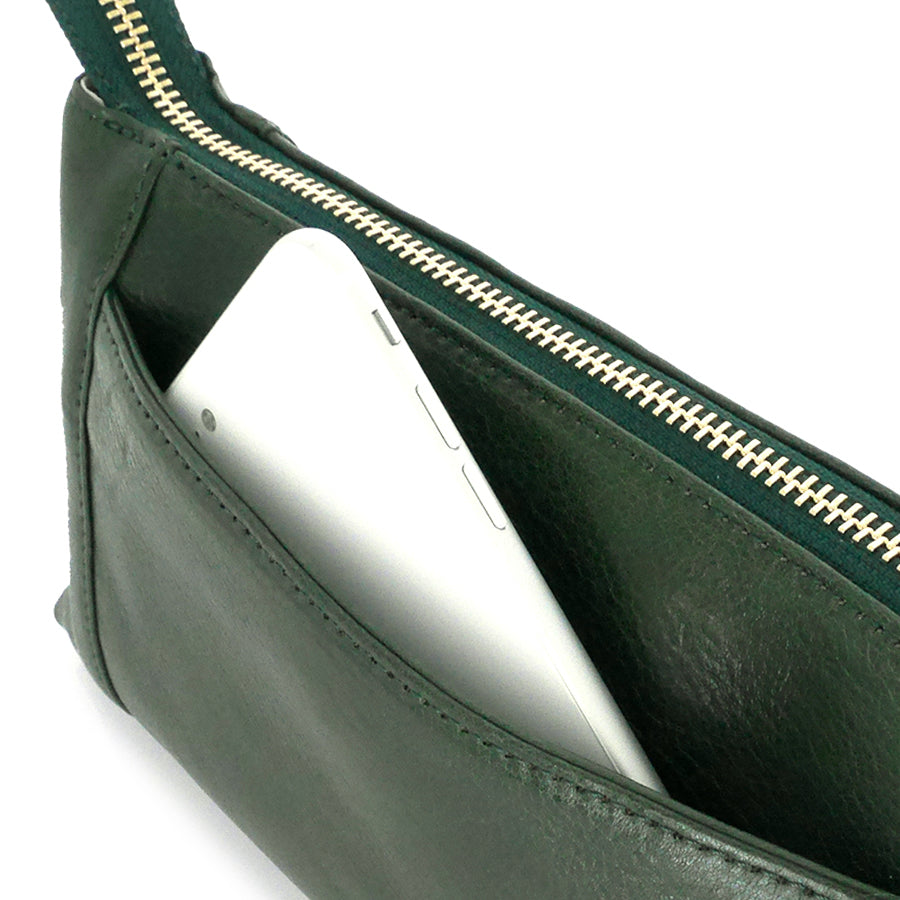 携帯電話や折財布、貴重品等を入れるのにちょうど良い大きさです。内側と外側にポケットがあり機能も充実しています。開閉ファスナーの終わり部分のホック止めにより、片手で開け閉めすることができます。