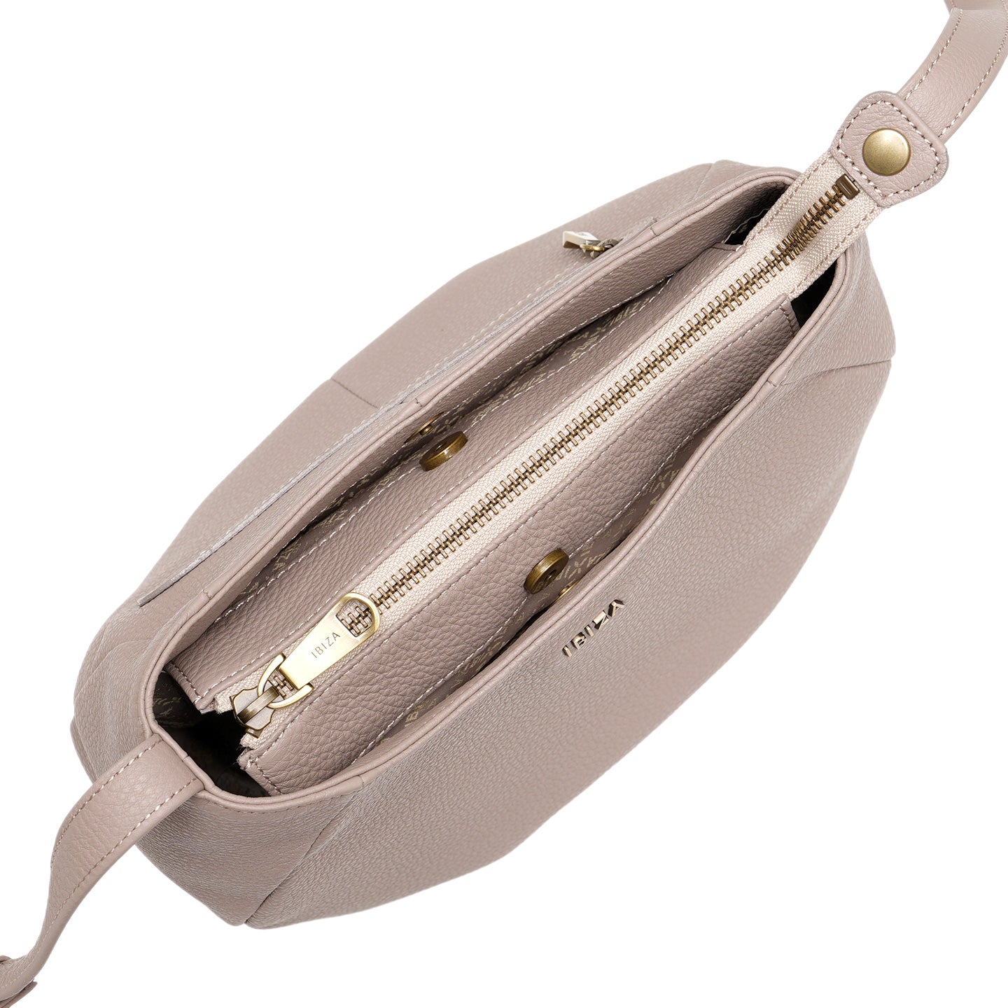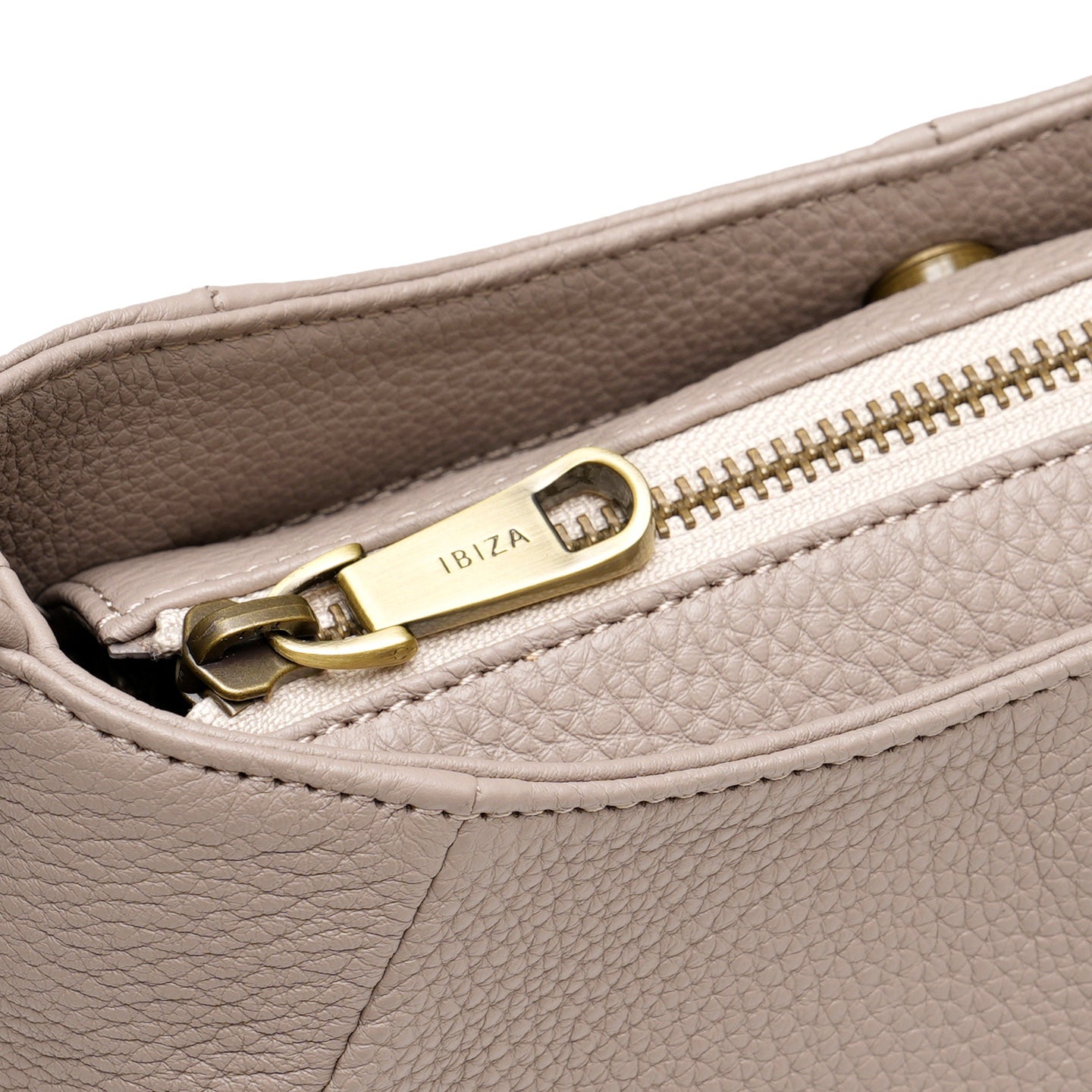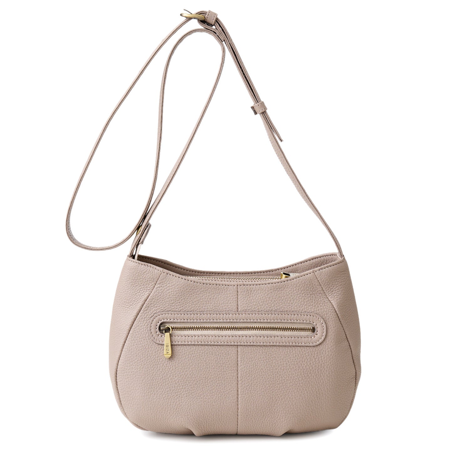 革の程よい艶感ときめ細かいシボ感がコーディネートを上質にみせてくれるショルダーバッグ。タックで柔らかさを演出するなど小技の効いたデザインも魅力です。マチ幅も広くつくられているので見た目以上に物が入るのもうれしいポイント。お財布やスマートフォンなどいつも持ち歩くアイテムはしっかり収納できます。
