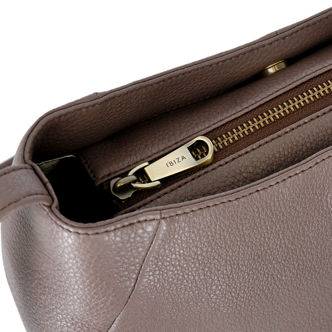 革の程よい艶感ときめ細かいシボ感がコーディネートを上質にみせてくれるショルダーバッグ。タックで柔らかさを演出するなど小技の効いたデザインも魅力です。マチ幅も広くつくられているので見た目以上に物が入るのもうれしいポイント。お財布やスマートフォンなどいつも持ち歩くアイテムはしっかり収納できます。