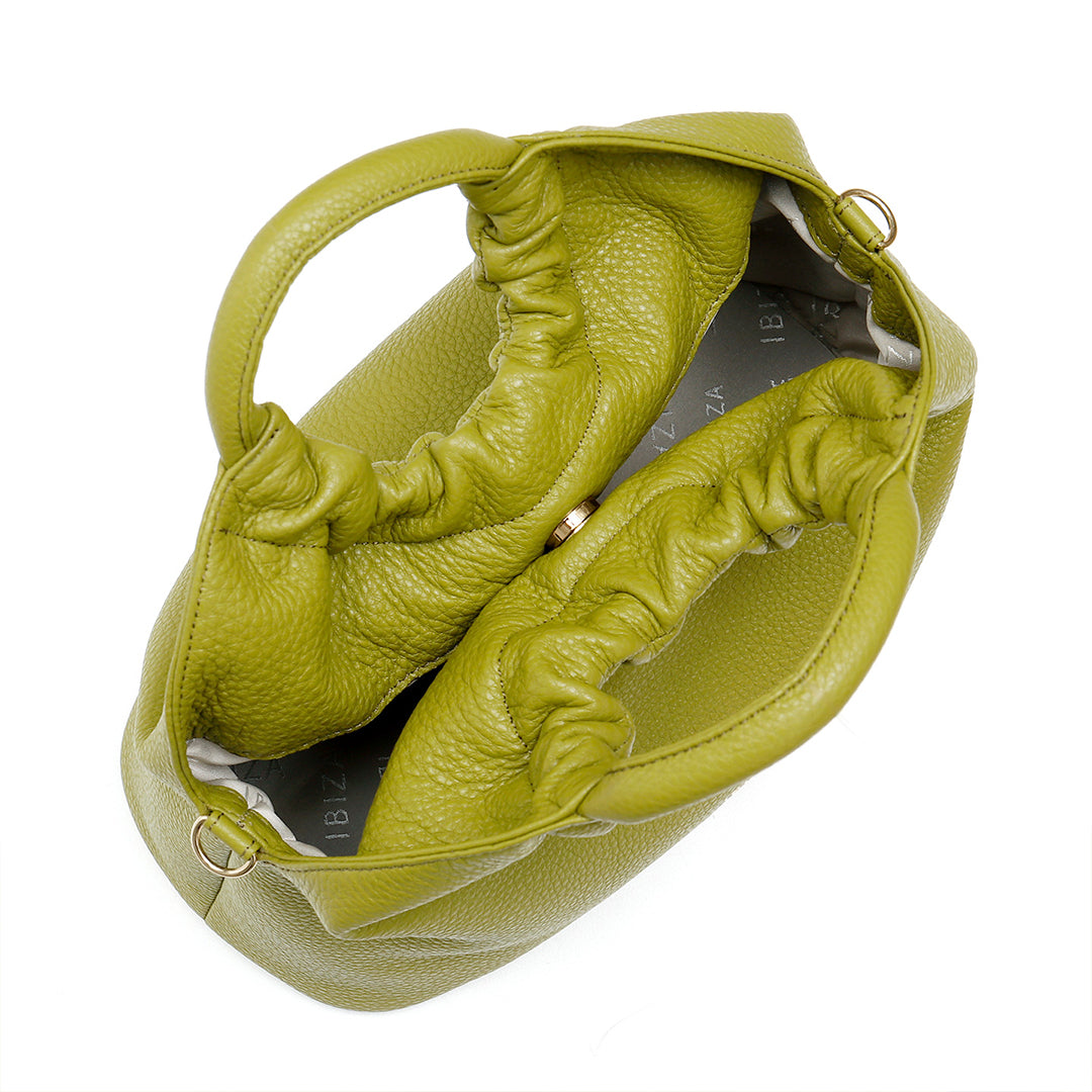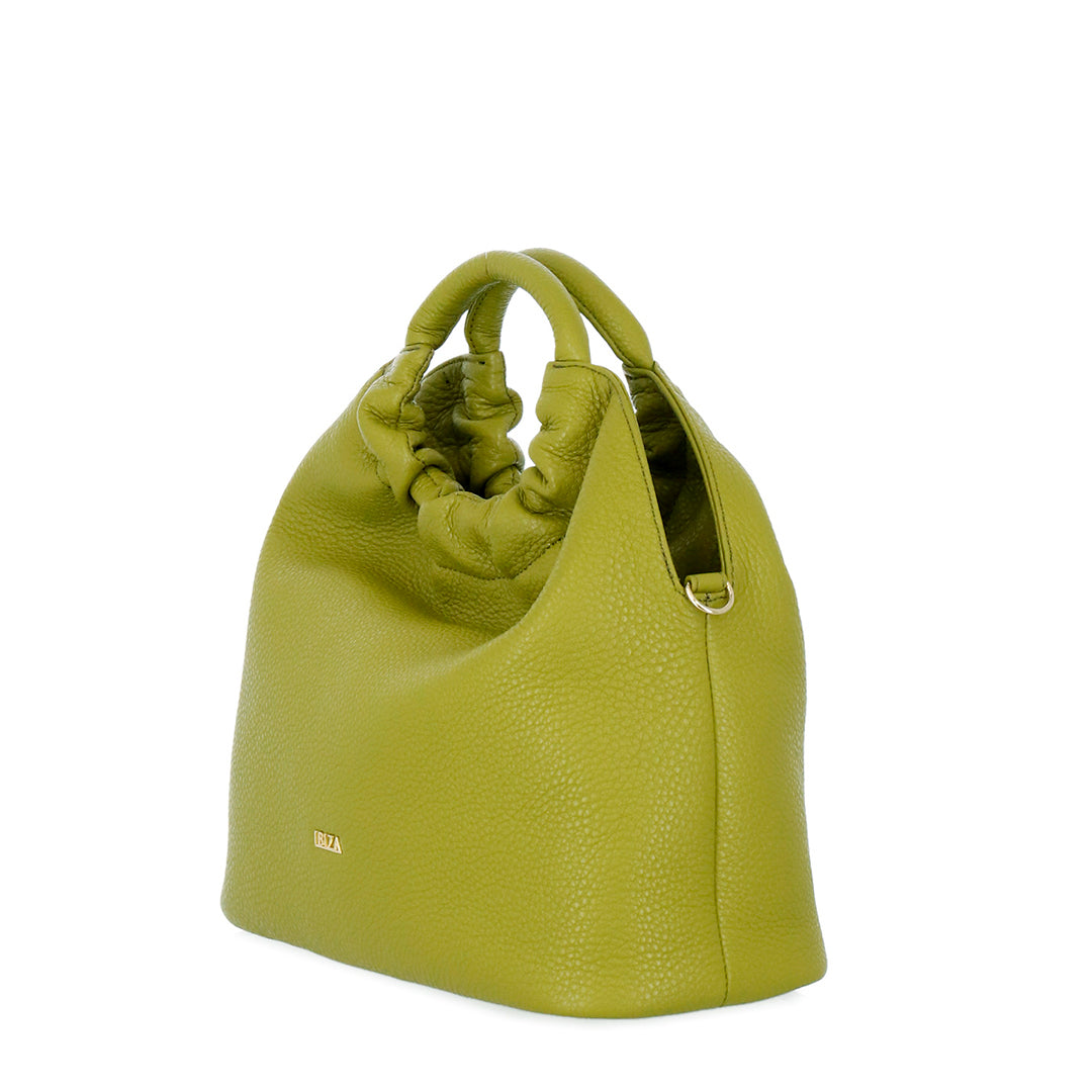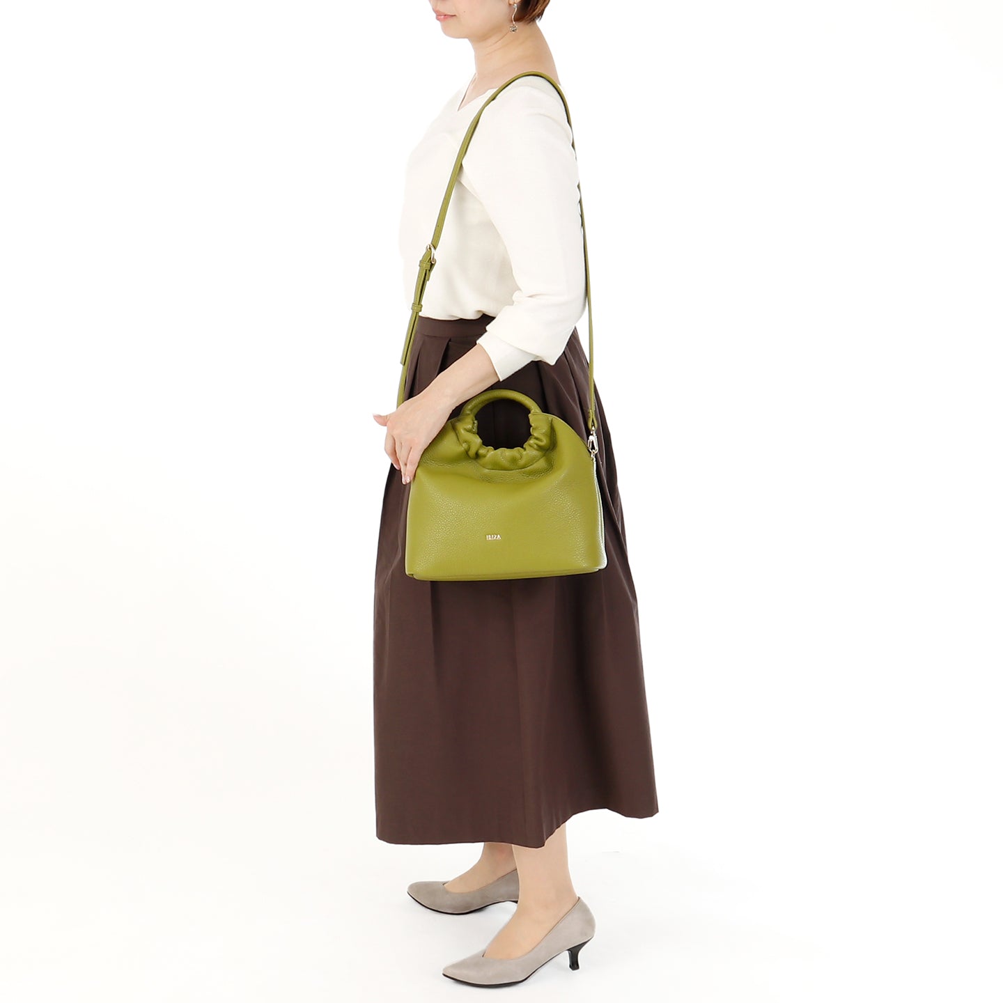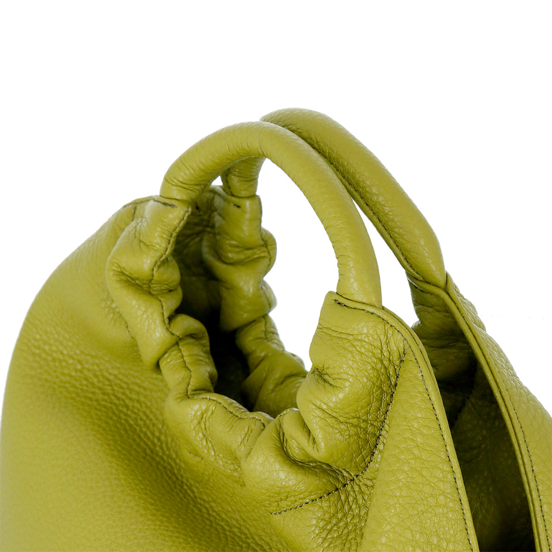 ふんわりとした素材の風合いが優しい印象を与える Blandura(ブランドゥーラ=やわらかな)。傷や汚れが目立ちにくく強度のある北米産のシュリンクレザーを使い、全体をソフトに仕上げました。カラーは、今シーズンのトレンドカラーでもあるピスタチオグリーンに加え、秋の気配を添えるダークモカ、ソフトな印象を与えてくれるモカの3色をご用意しました。