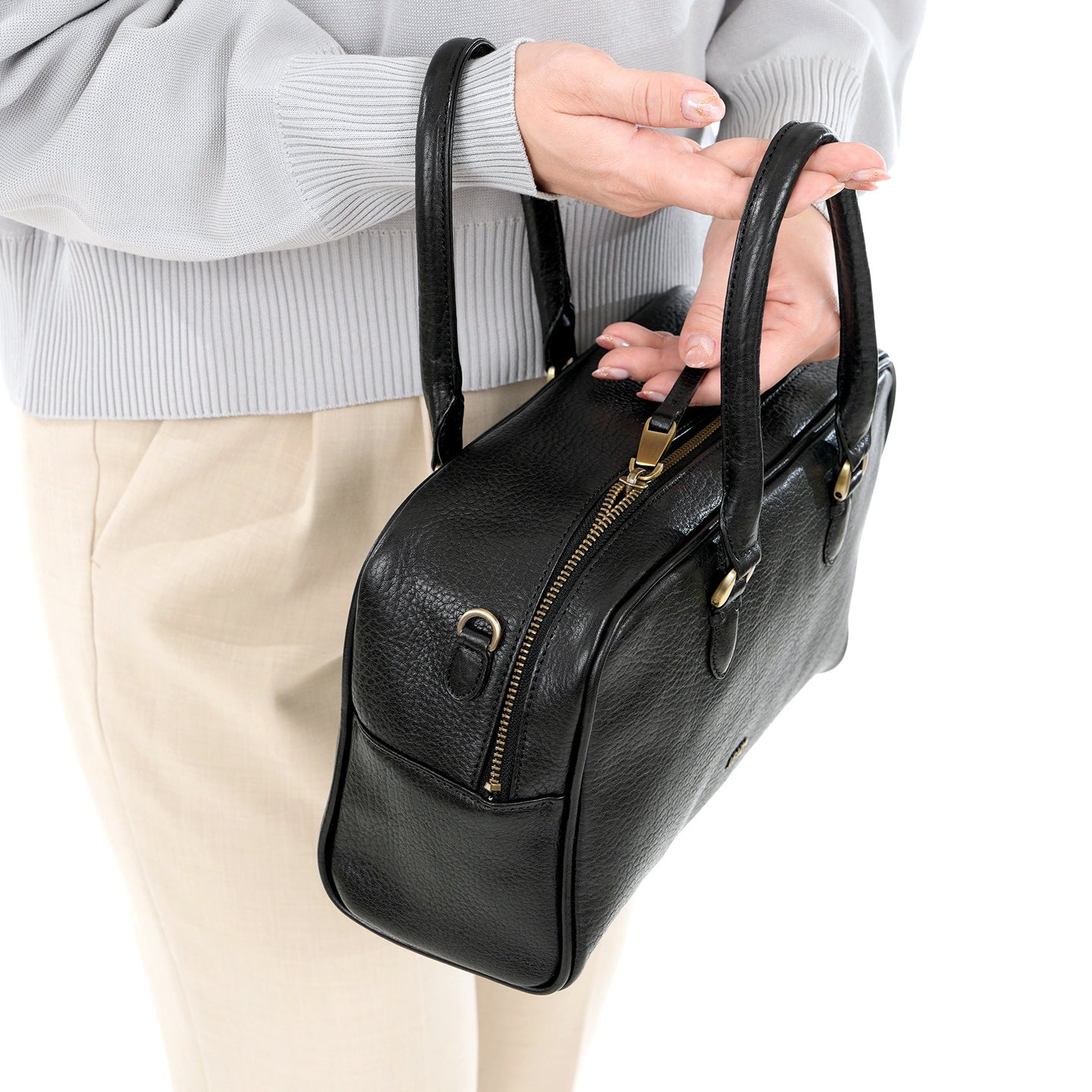 シンプルで上品な佇まいに、ハンドルまわりのさりげないステッチが温もりを添え、クラフト感を抑えつつも、豊かな表情をもつレザーがやわらかく、上質な印象を引き立てます。