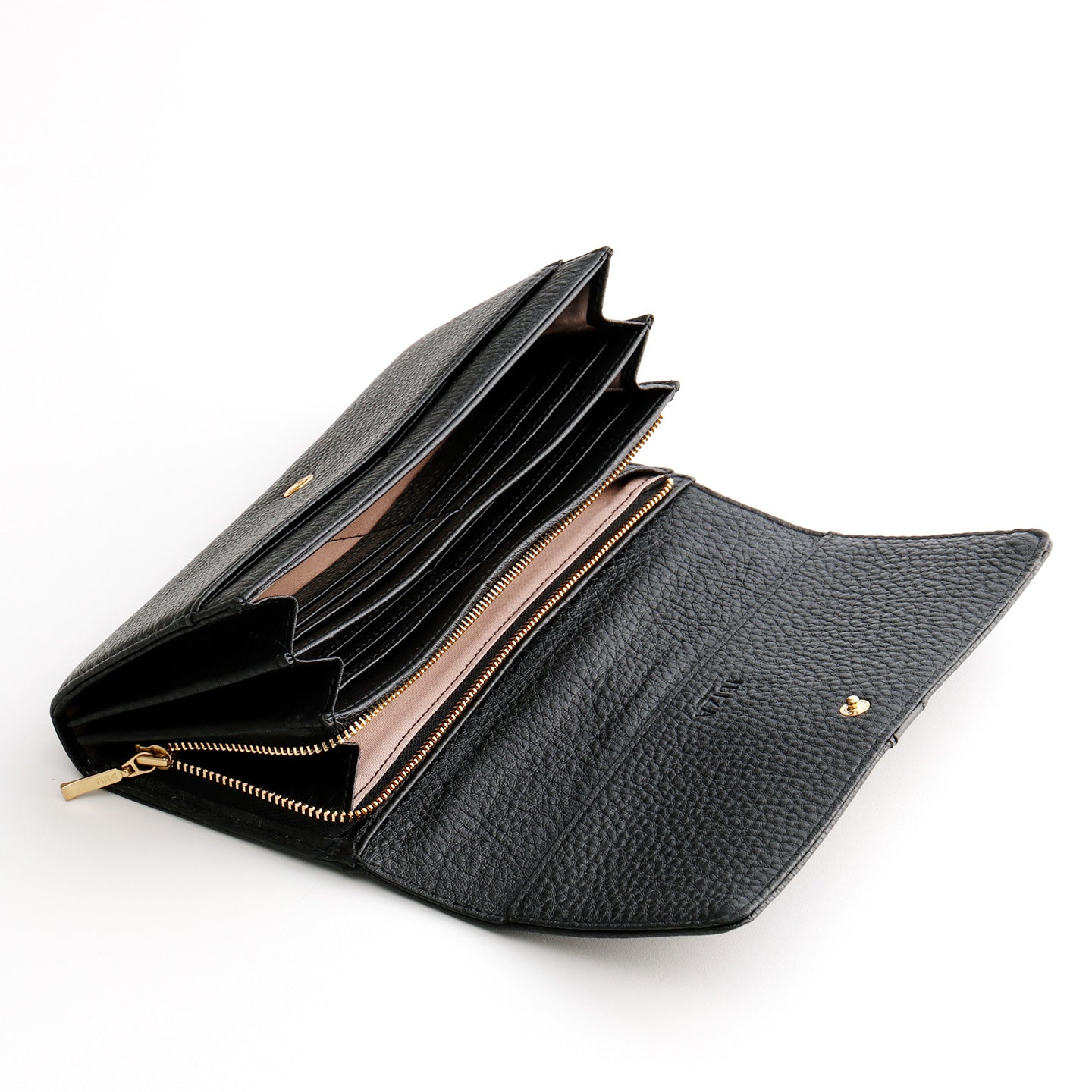 小銭入れは使いやすいL字ファスナーで機能的。お札やカードも十分な収納スペースがあり整理しながら便利にお使いいただけます。同シリーズのバッグと合わせてお楽しみください。