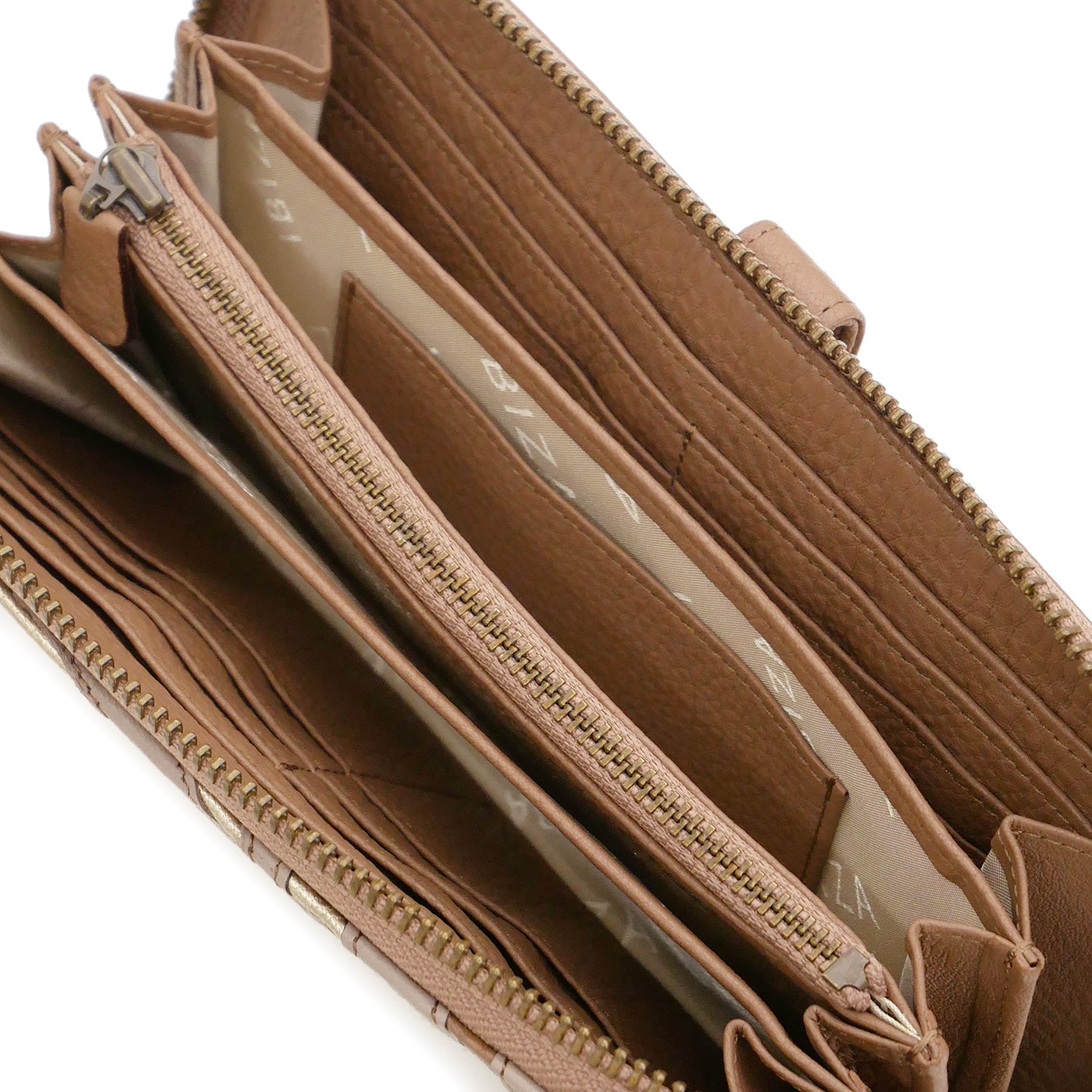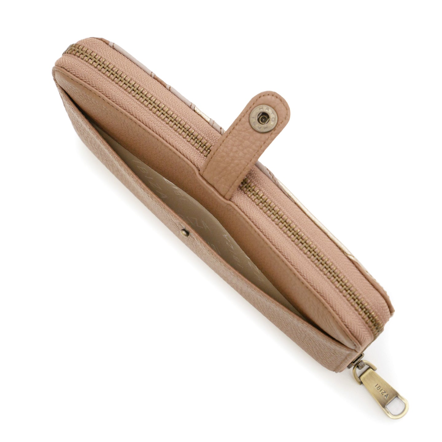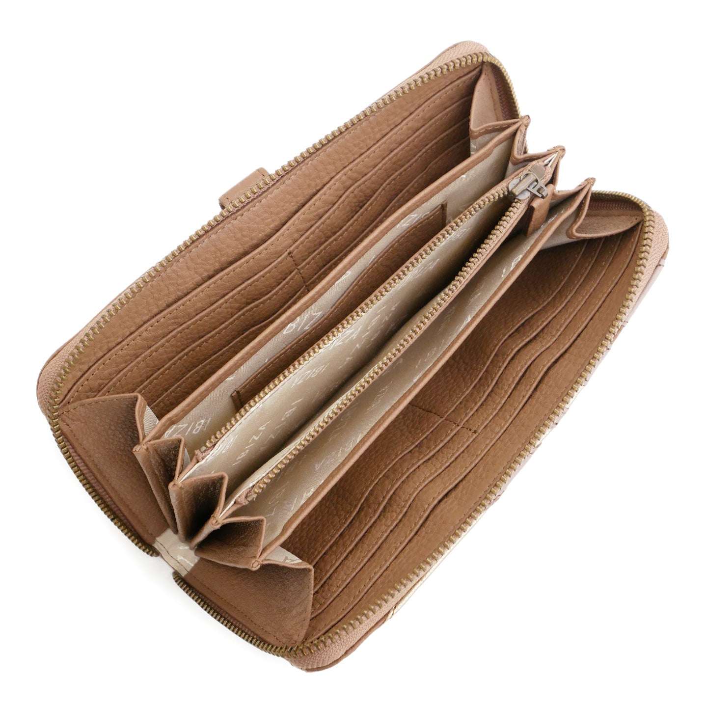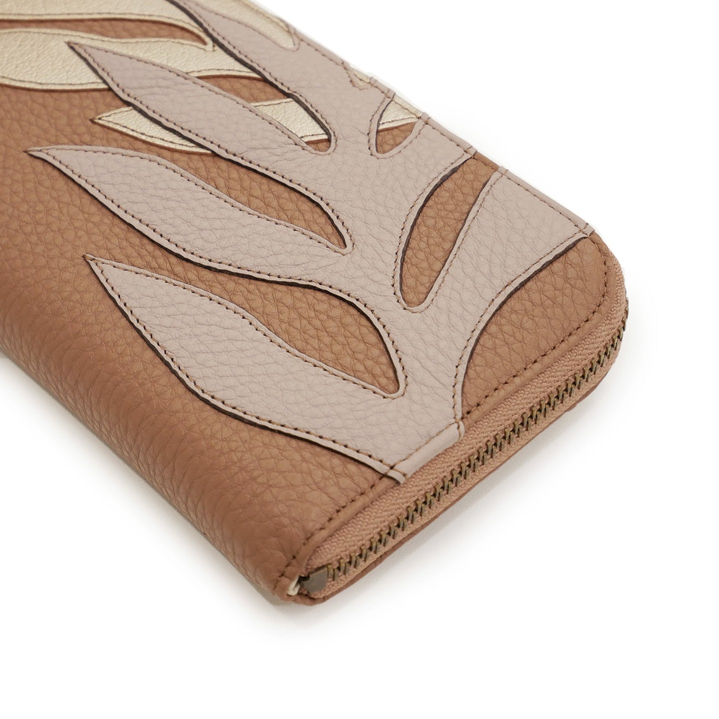 トープカラーは「朝」、モカカラーは「夕方」をイメージしたやわらかな色使いにデザインしました。ラウンド型長財布は、たくさんのカードポケットを備えたたっぷり収納。