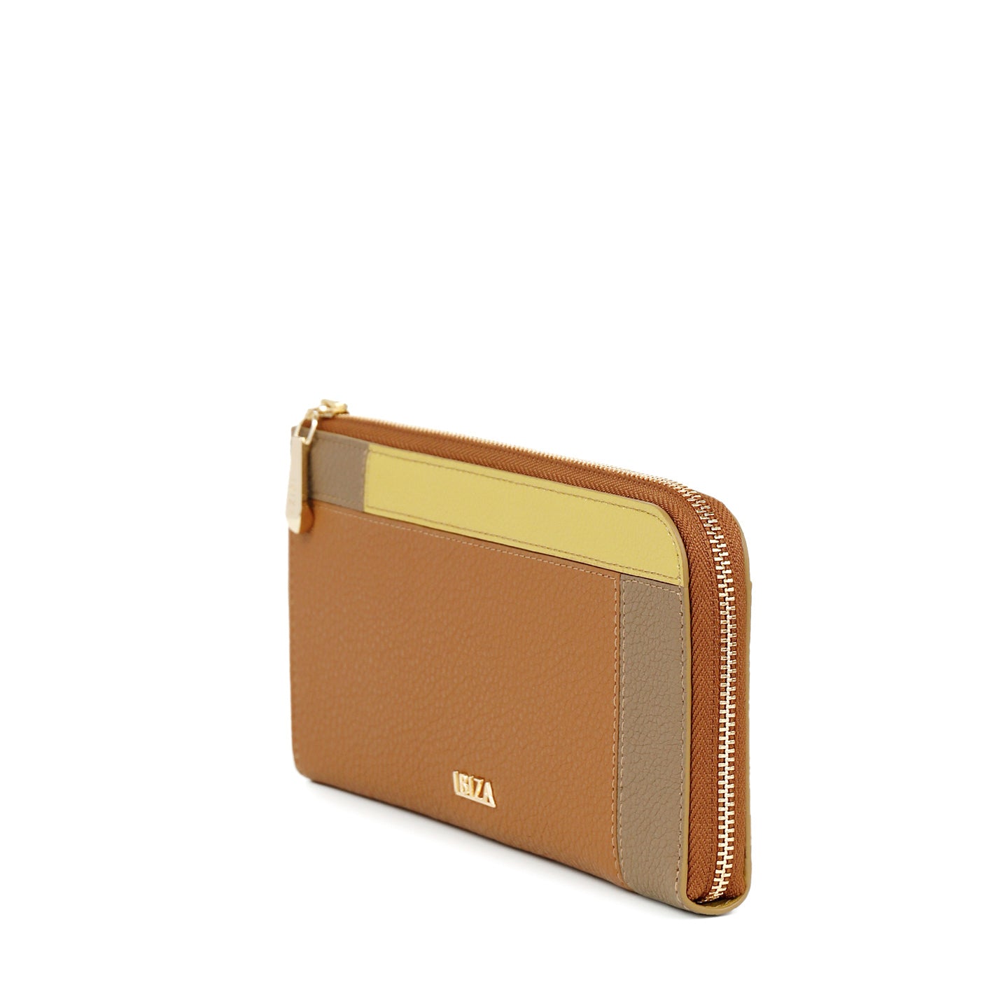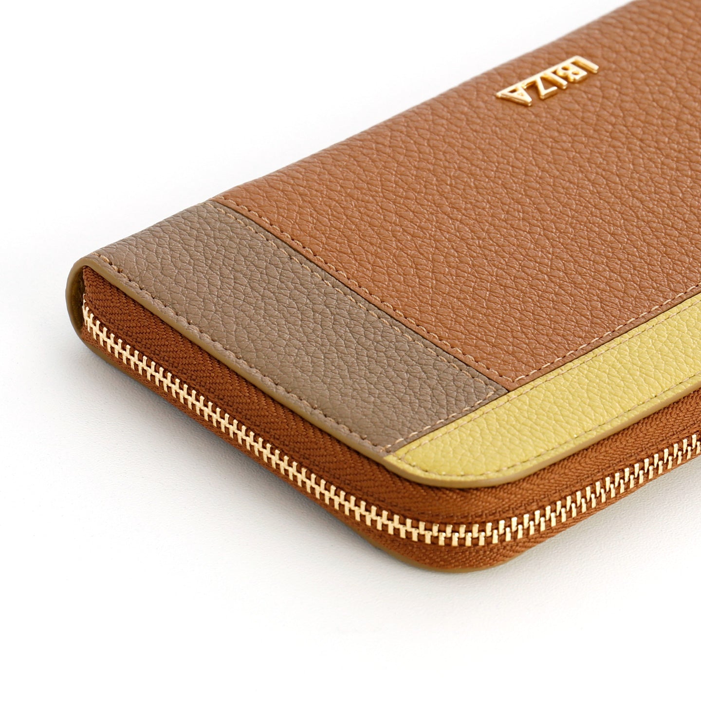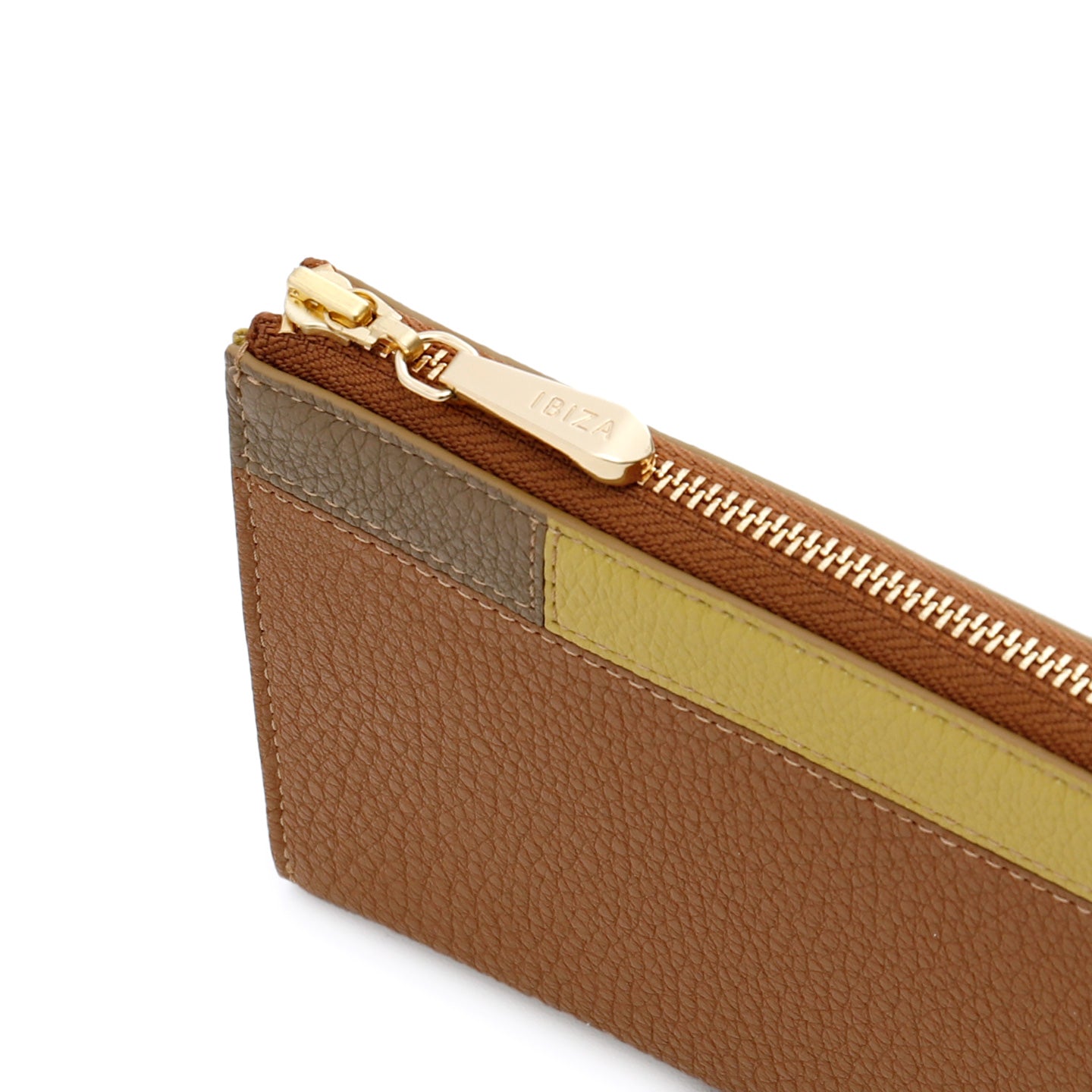 ふっくらやわらかなシュリンクレザーを、まるでパズルのように丁寧につなぎ合わせた、コンビナシオン(=組み合わせ/調和)。直線的なデザインに映える3色のポイントカラーを際立たせる配色にこだわりました。