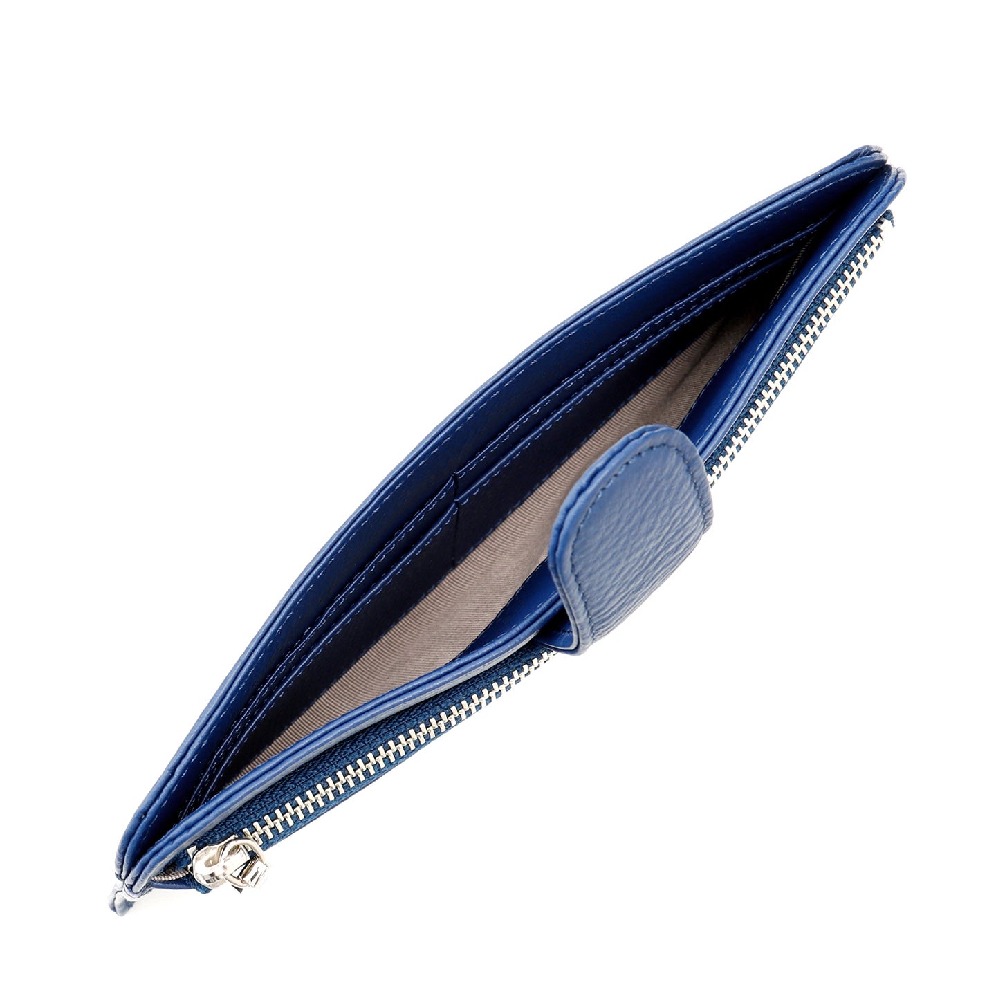 中央のポケットには内側にカードポケットが4個あり、キャッシュカード等も整理して入れておくことができるマルチケース。前面のファスナーポケットを小銭入れに、通帳の代わりにお札を入れて薄型のお財布としてもお使いいただけます。