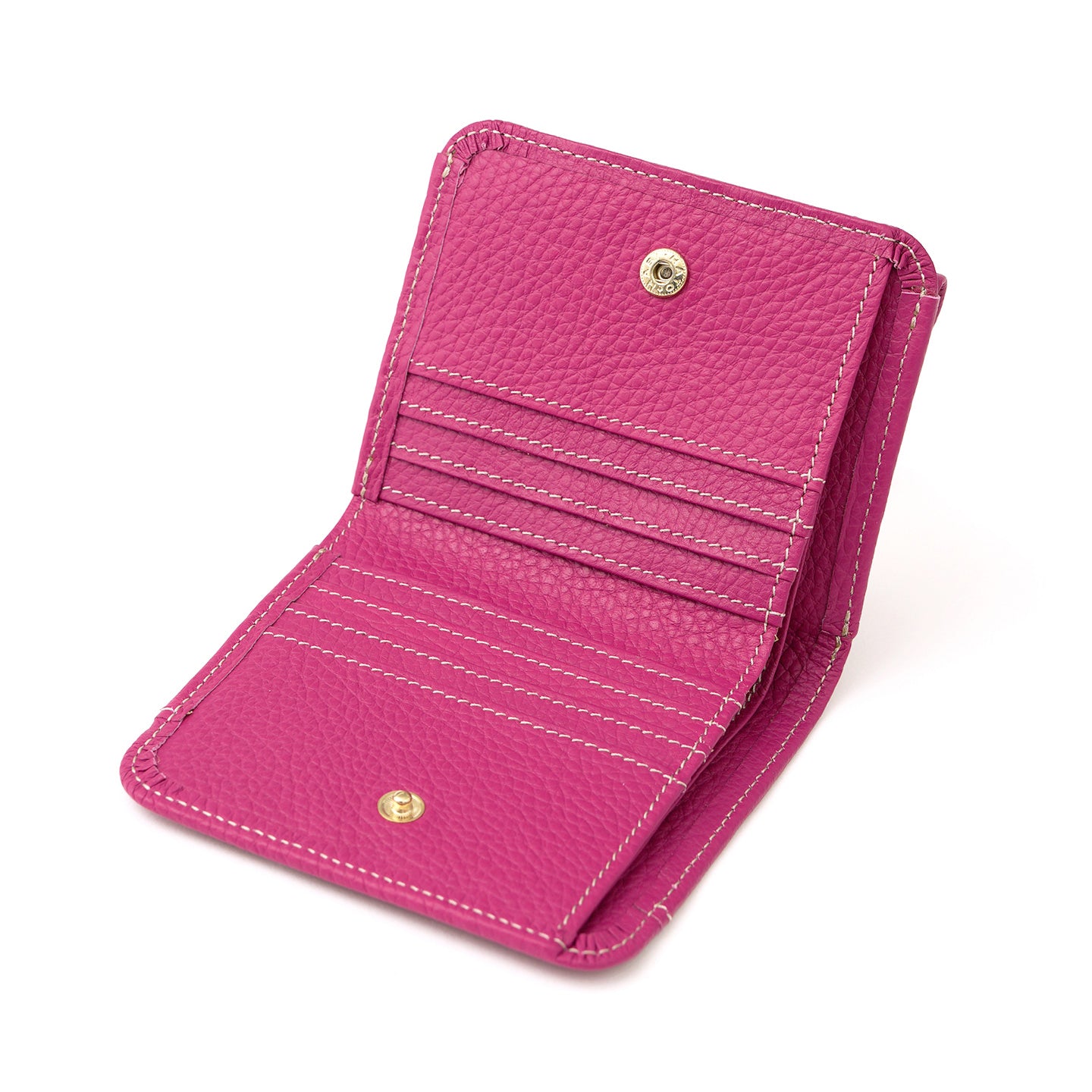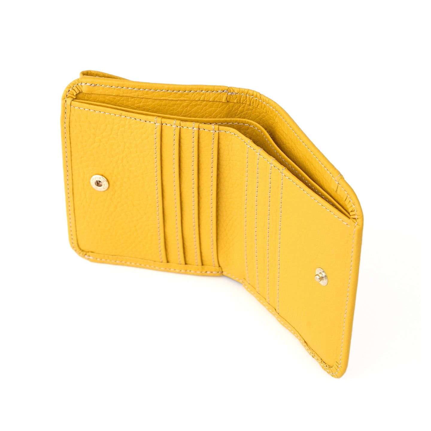 小銭の出し入れがしやすいBOX型コインケース付き二つ折り財布。カードポケット8個、仕切り付きの札入れなど、コンパクトながら整理しやすい設計です。