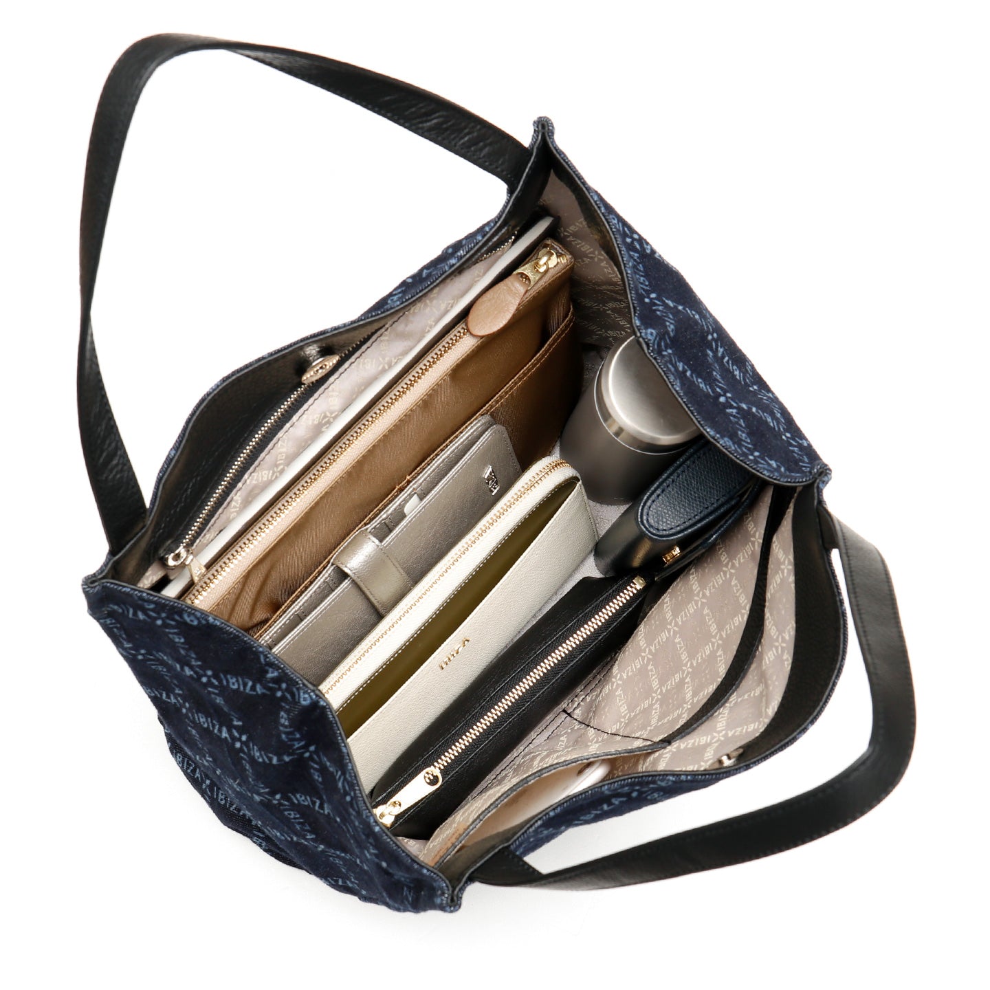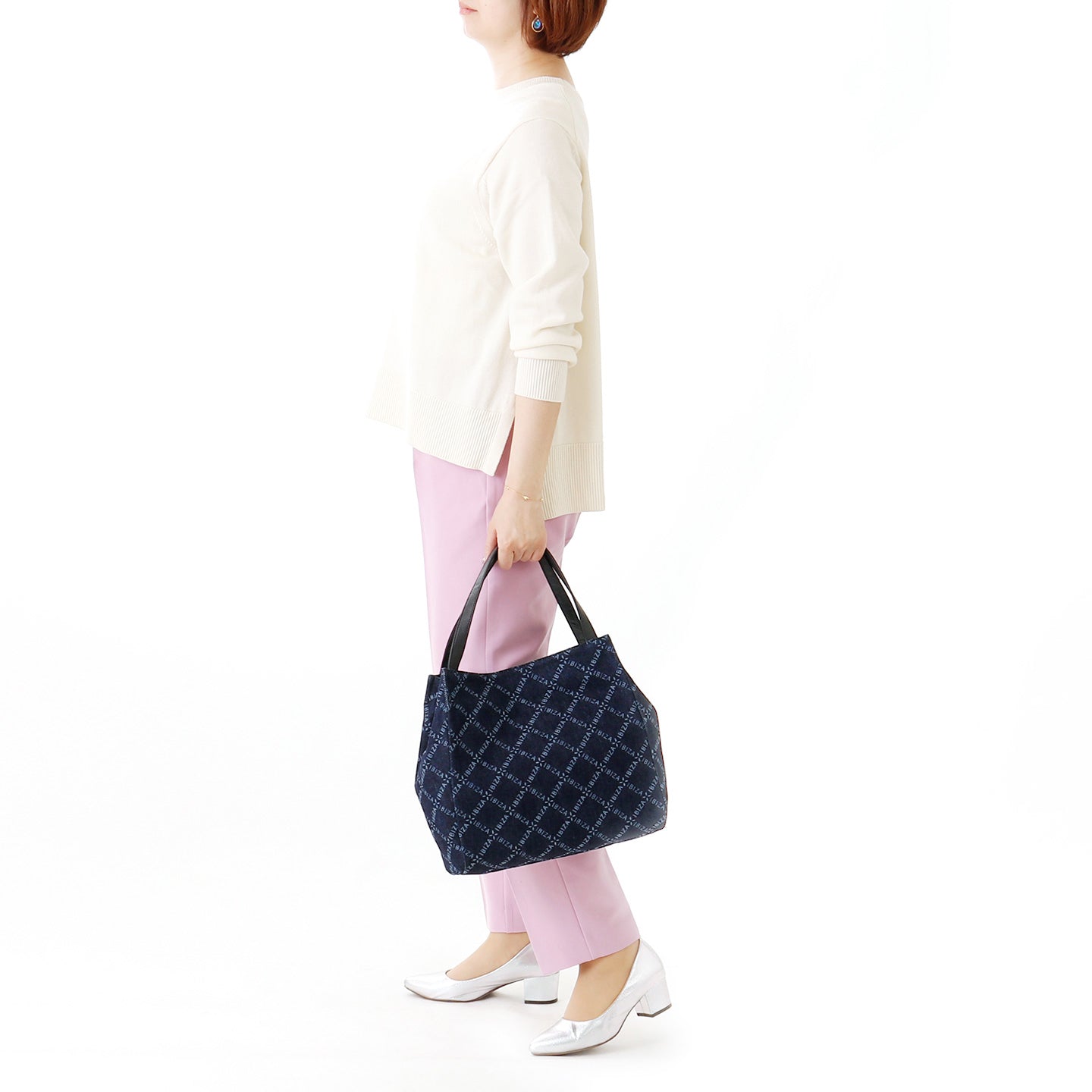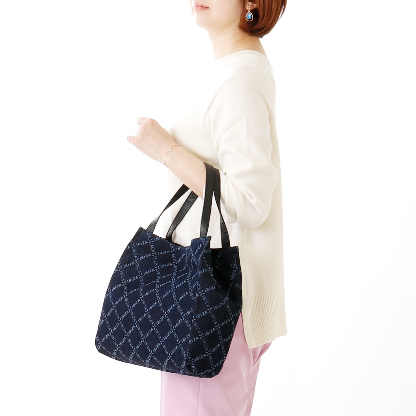 ラフで軽やかなデニムの風合いが心地よい「バケーロ」。世界的にも高く評価される岡山県産の高品質なデニムに、イビサロゴのチェック柄とオリーブの花のモノグラムをレーザー加工であしらった、オリジナルテキスタイルを使用しています。薬品や水をほとんど使わずに模様を描く「レーザー加工」は、従来のデニム加工に比べて環境にやさしいエコな技術としても注目されており、その繊細で奥行きのある表情が、このシリーズならではの魅力を引き立てます。