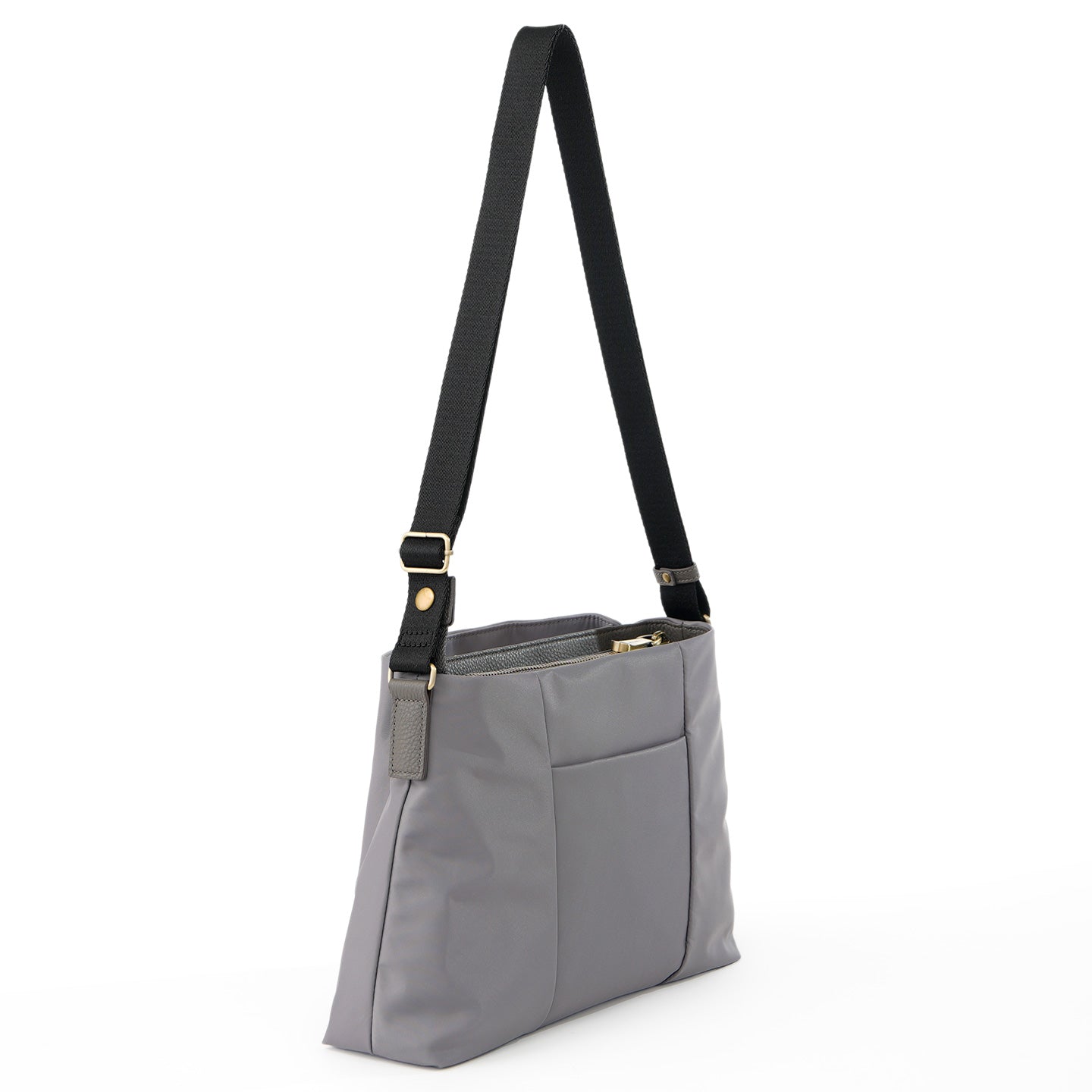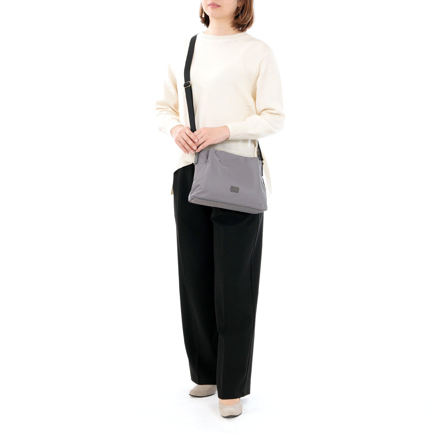 掛け方によって印象を変えられるショルダーバッグ。短めに掛ければ軽快に、少し長めにすると落ち着いた雰囲気に。