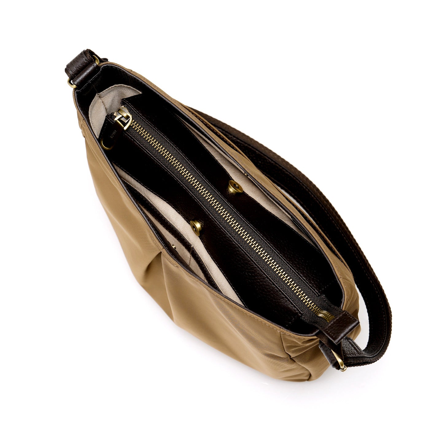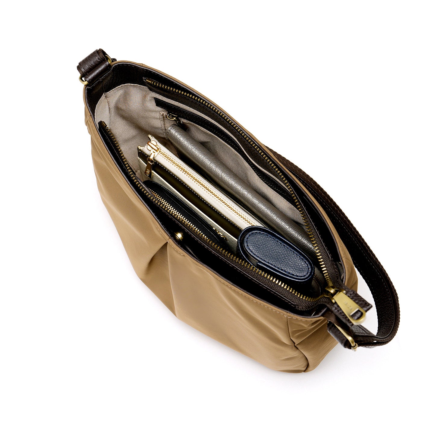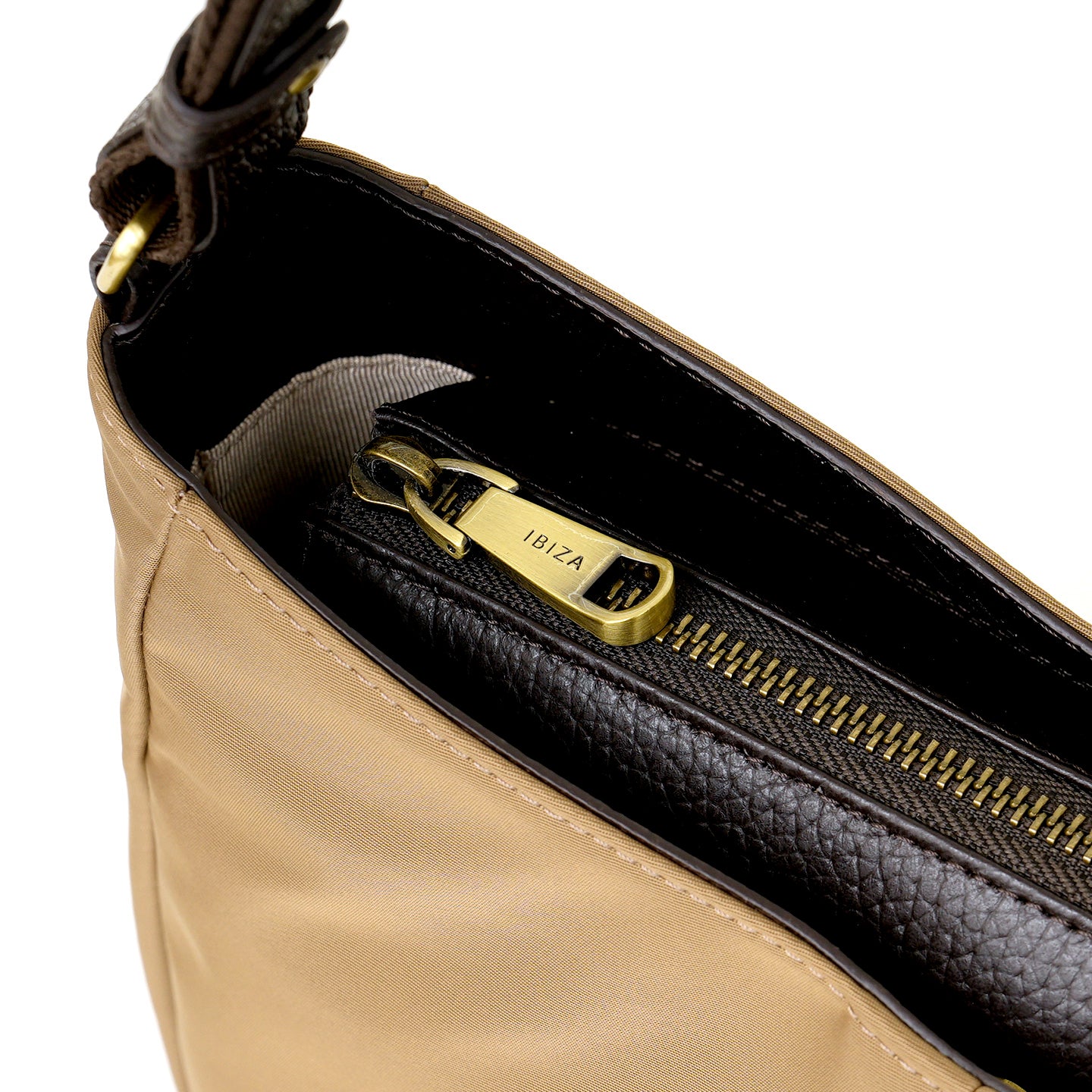 上品な光沢感のある、丈夫なナイロン素材を使用したショルダーバッグです。