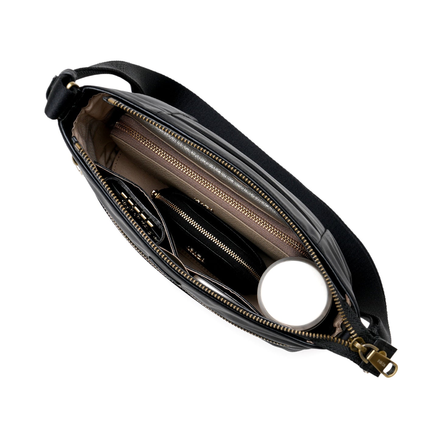ショルダー紐は取り外し・長さ調節ができ、肩掛け・斜め掛けとシーンに合わせて使い分けられます。メイン収納には、長財布やポーチ、折りたたみ傘などデイリーアイテムがしっかり入る安心の容量。軽量で体にフィットしやすく、長時間のお出かけでも快適にお使いいただけます。