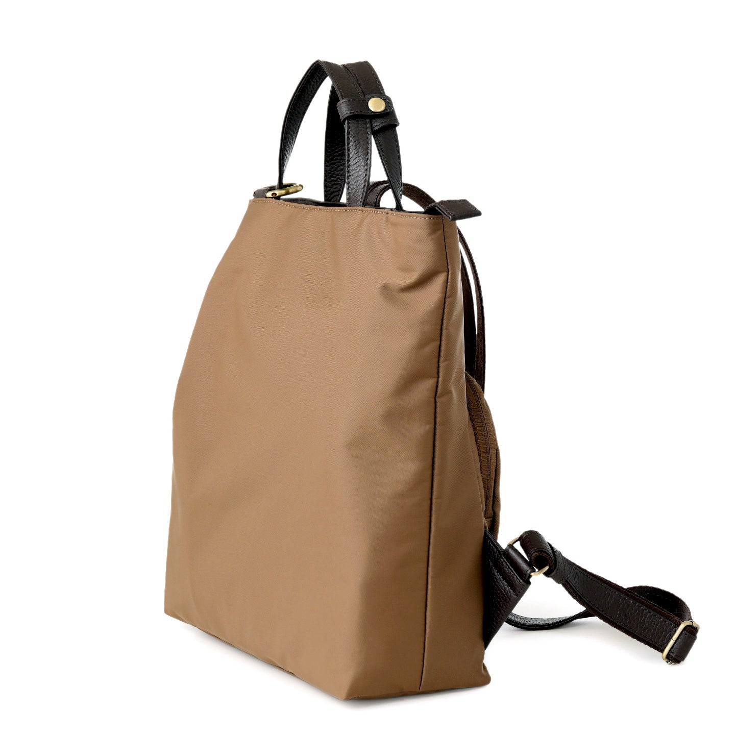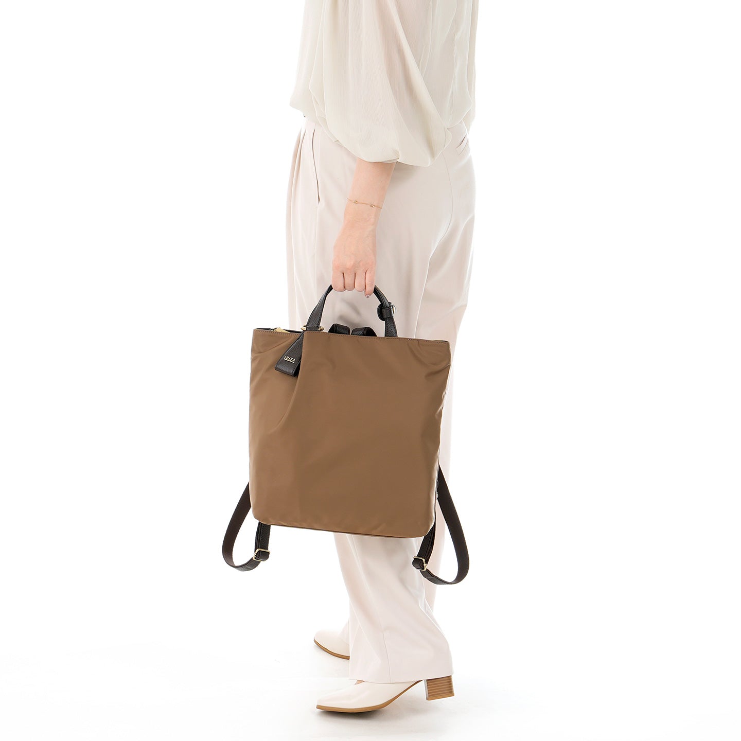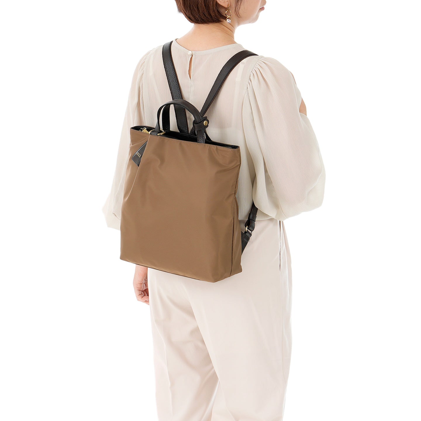 やさしくやわらかいシルエットのリュック。花びらをイメージしたハンドルデザインがポイントです。