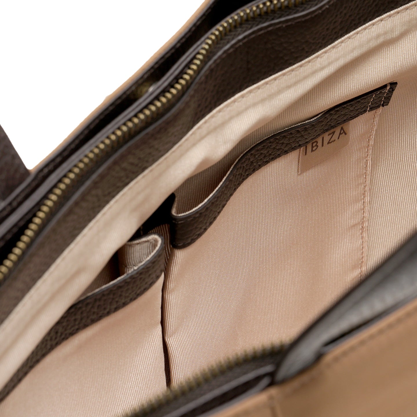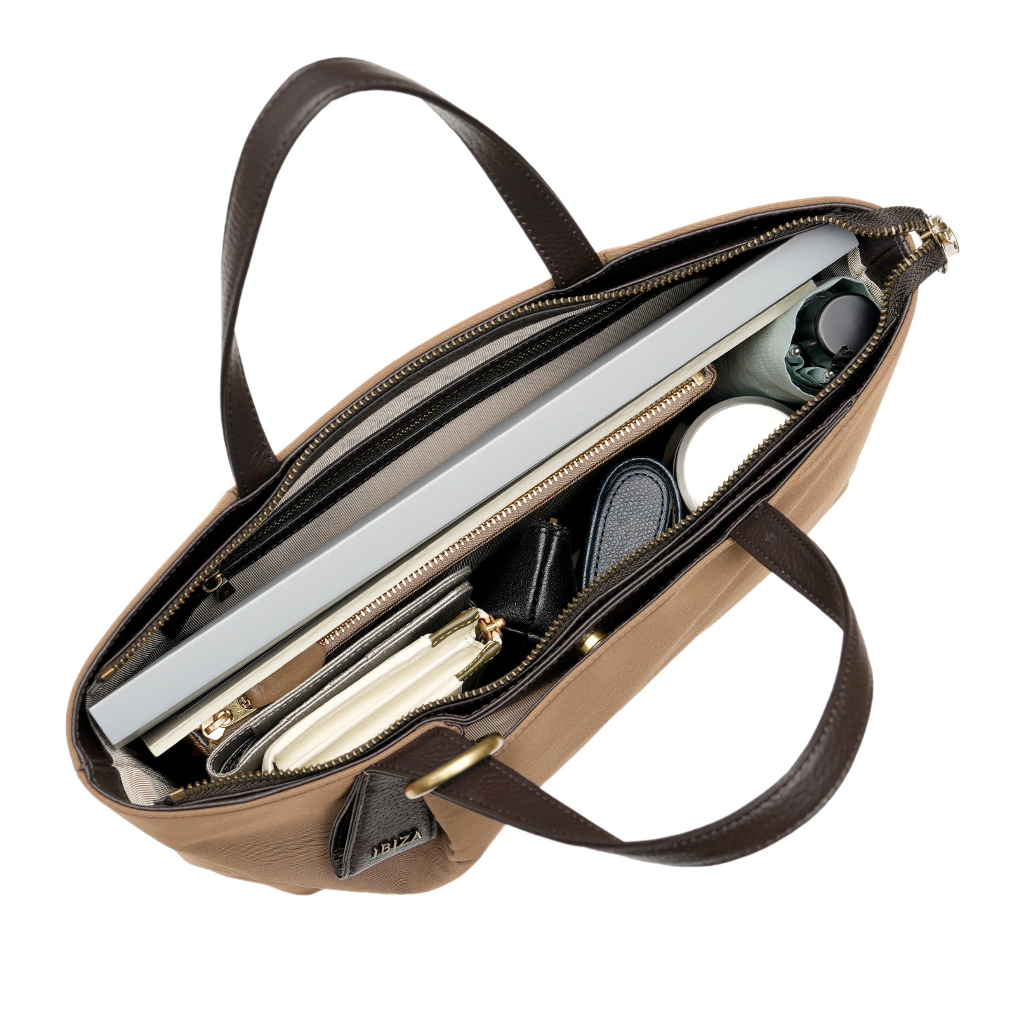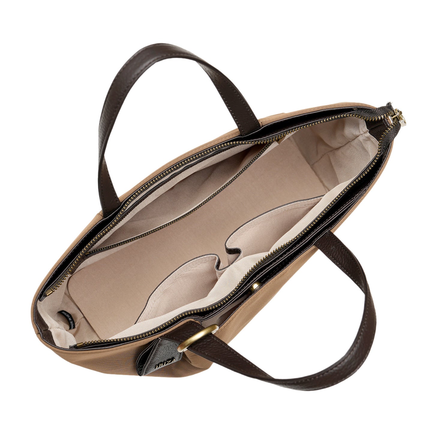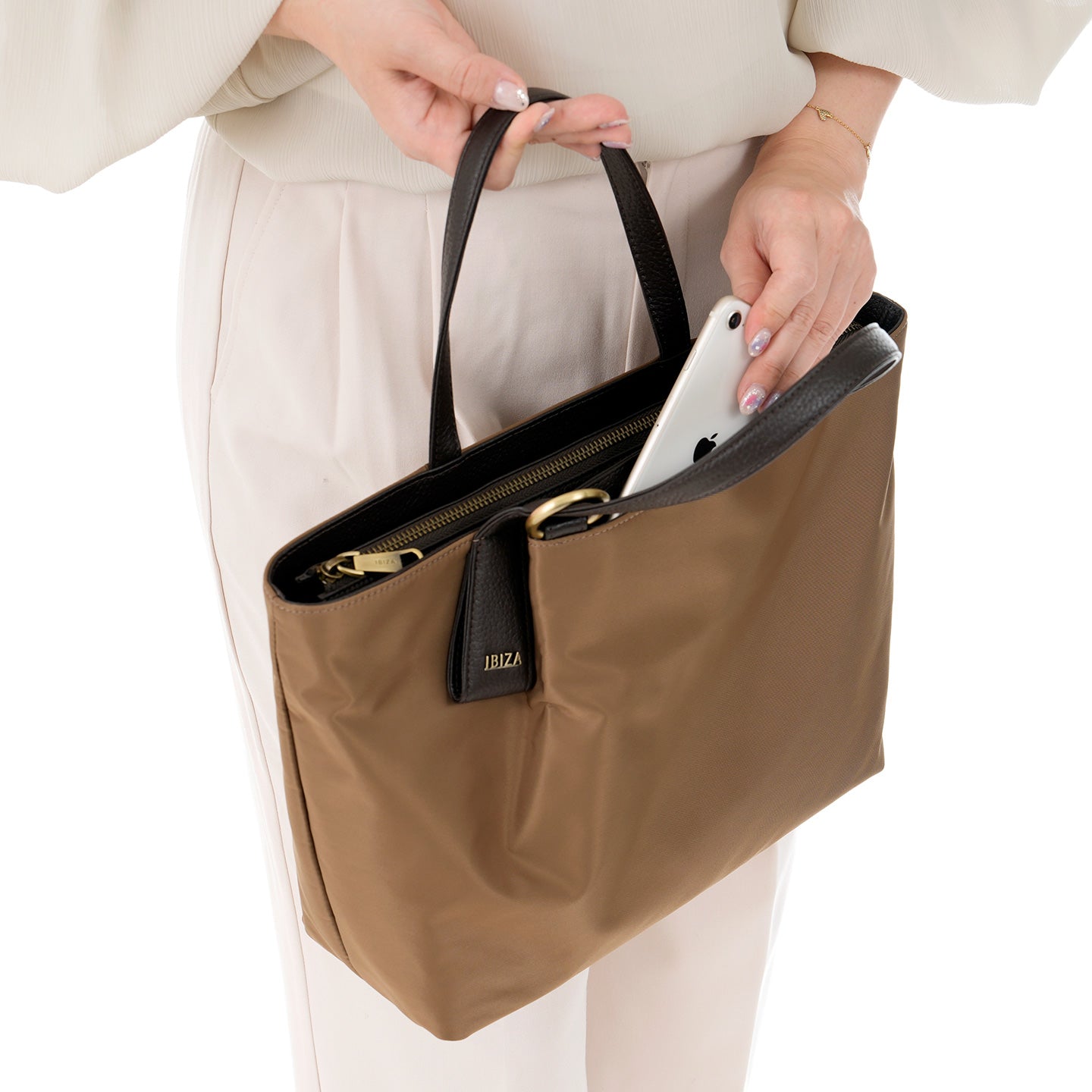 カジュアルスタイルからオフィススタイルまで幅広いコーディネートに合わせやすい、軽くておしゃれなハンドバッグです。