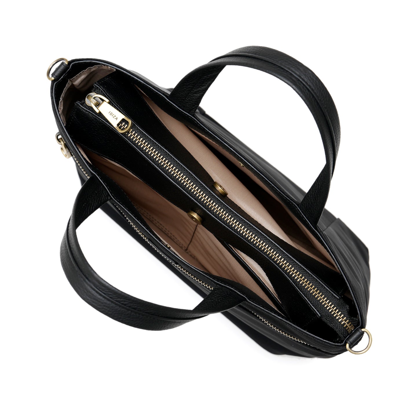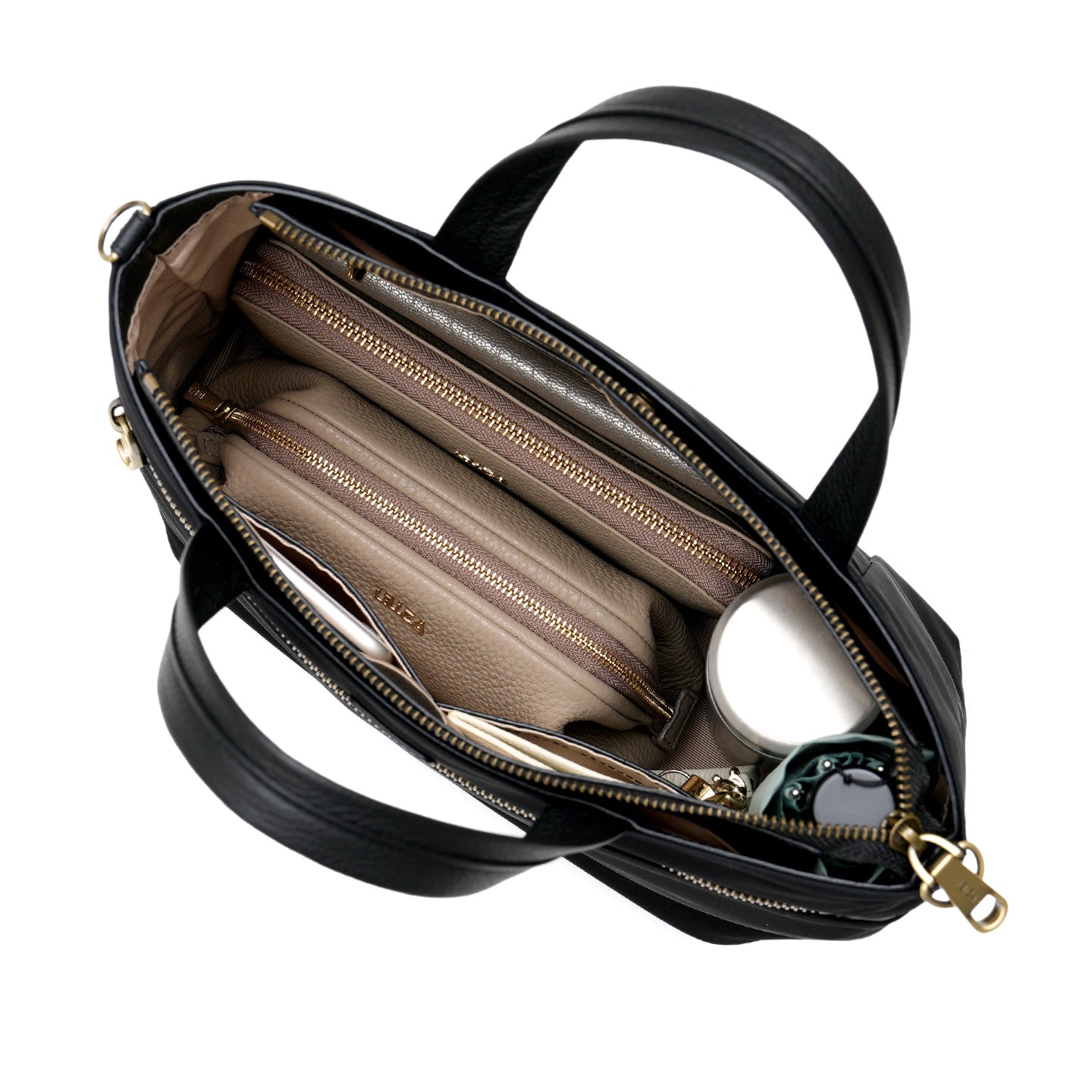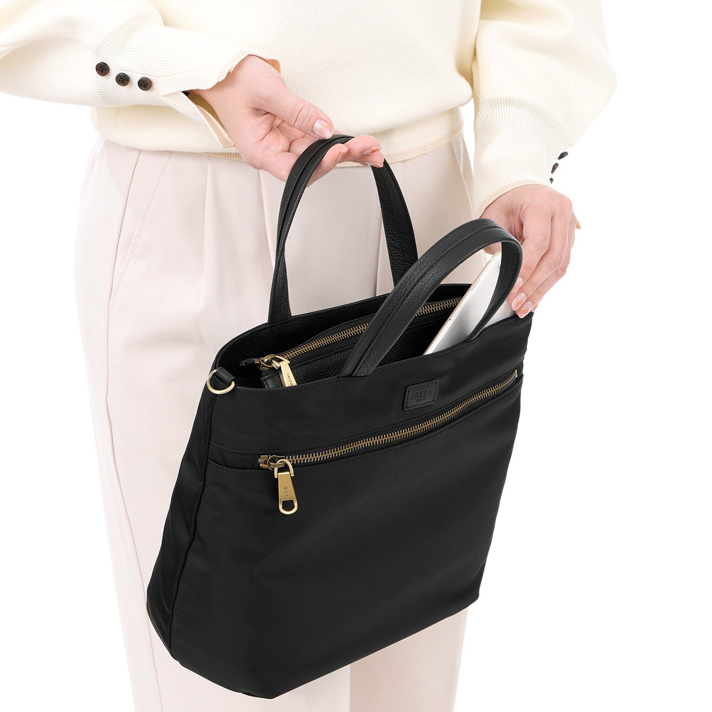 背面にはスマートフォンやハンカチなど“よく使うもの”の収納に便利なオープンポケットを配置。メイン収納は、長財布・ポーチ・折りたたみ傘などお出かけに必要なものがしっかり収まり、すっきりした見た目に、うれしい収納力を備えています。