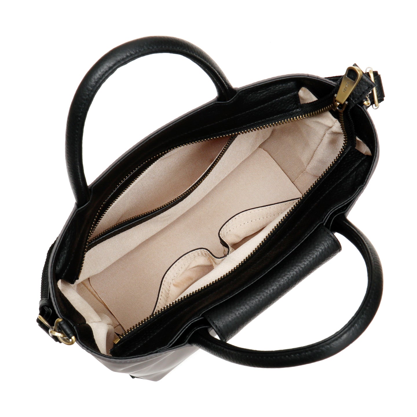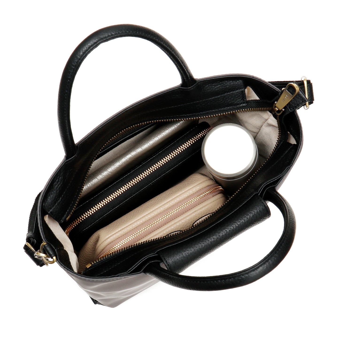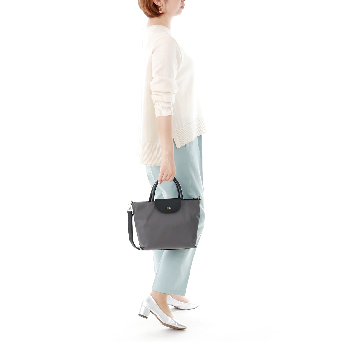 シーンやコーディネートに合わせて持ち方を変えられる、程よいサイズの2WAYバッグ。バッグの内側にはふたつに分かれたオープンポケットとファスナーポケット、外側には小物の収納に便利なファスナーポケットが付いています。
