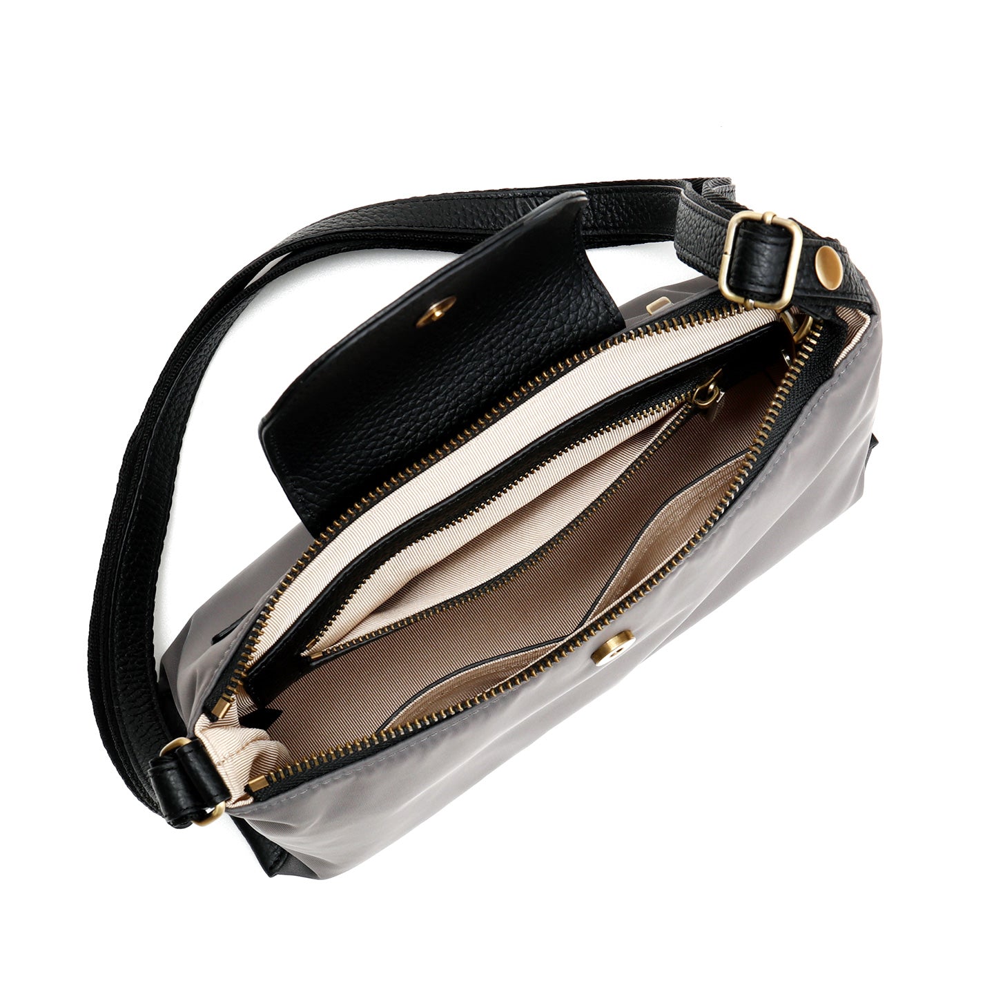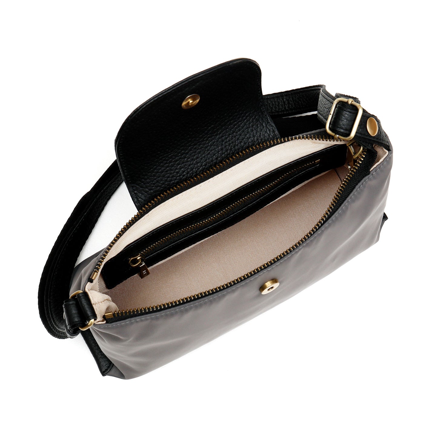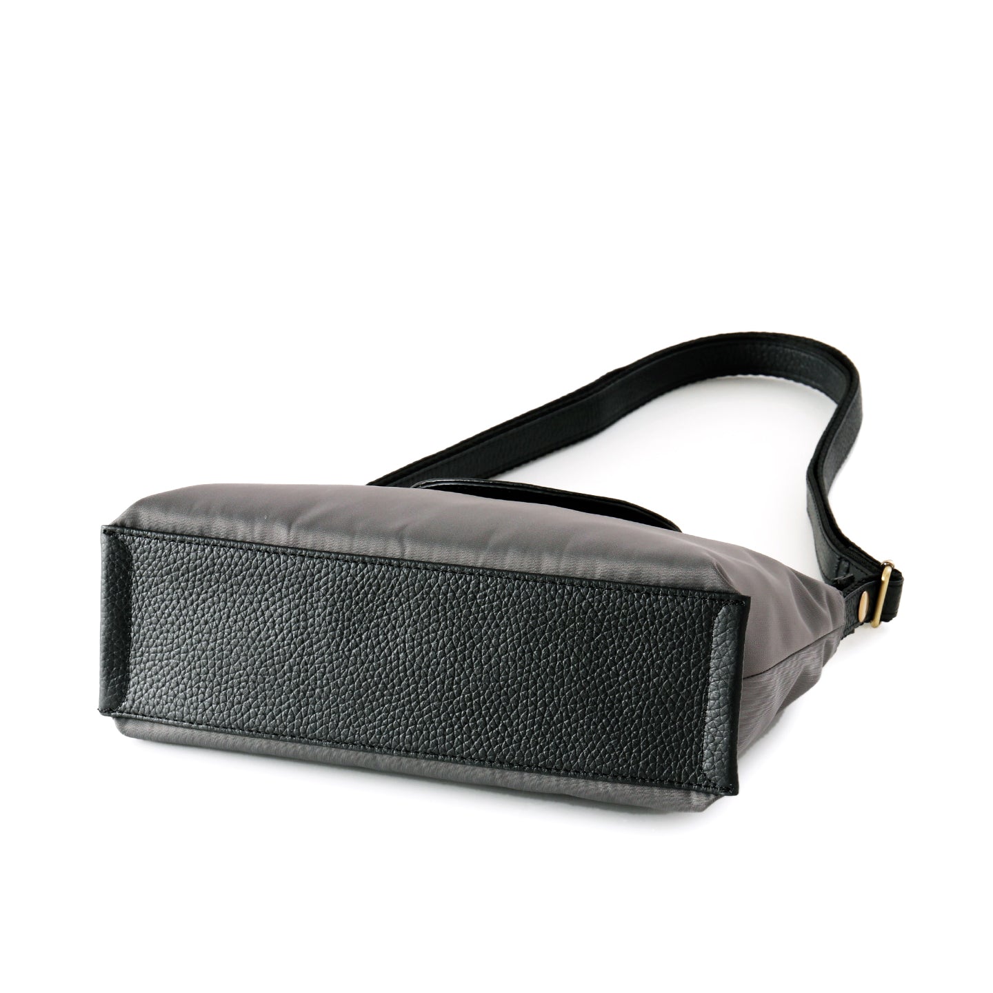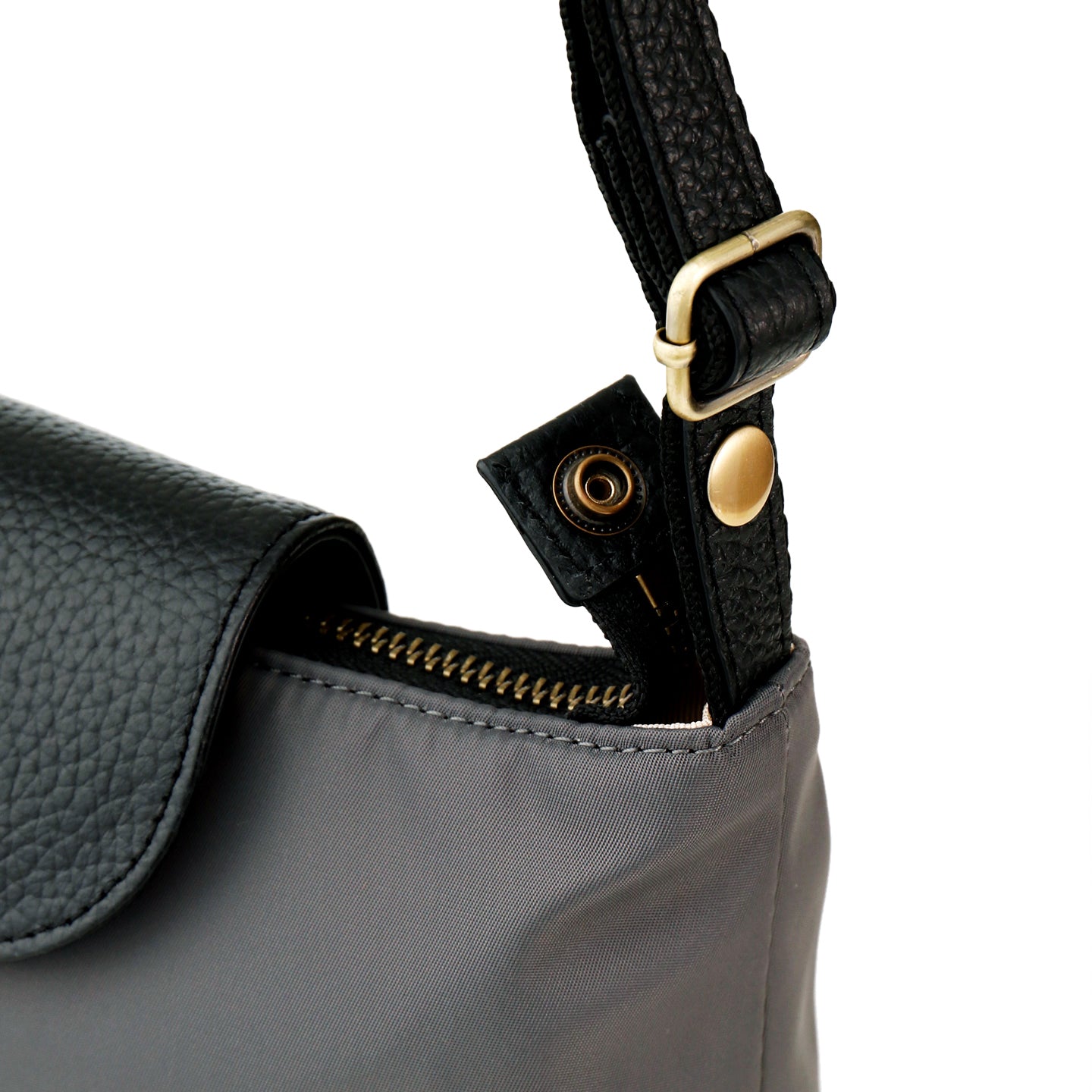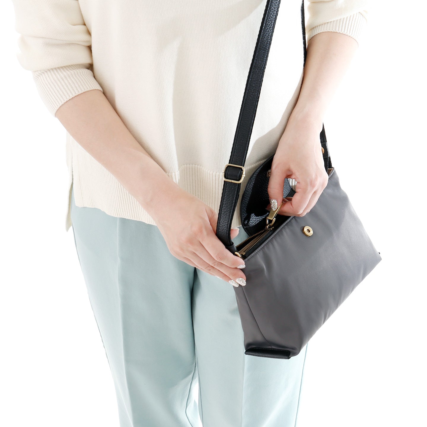丈夫で軽量なナイロン素材に、やわらかく手になじむ牛革をバランスよく配し、カジュアルになりがちなナイロンバッグをエレガントなデザインで仕上げました。