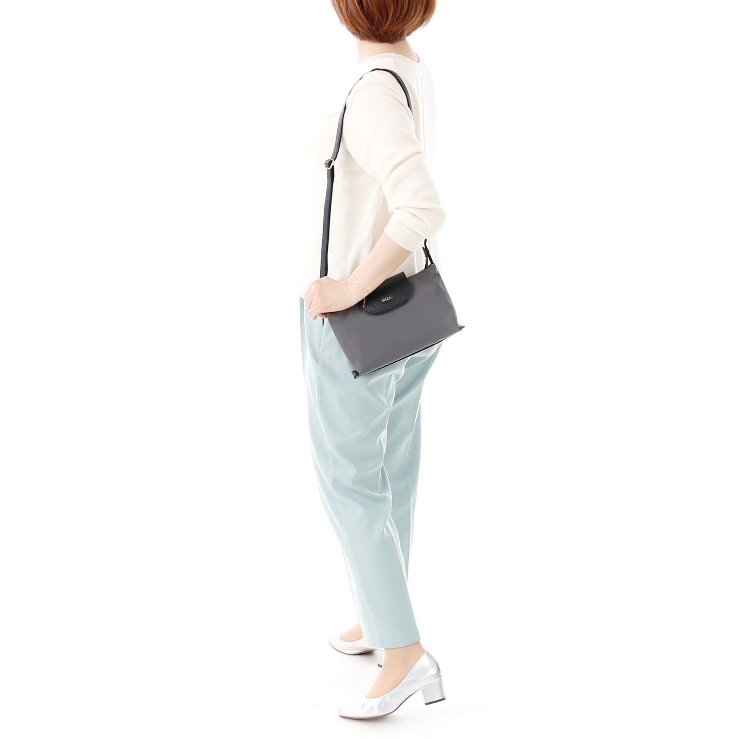 ショルダー紐はお好みの長さに調節できるので、肩掛けや斜め掛けなどスタイルに合わせて使い分けられます。