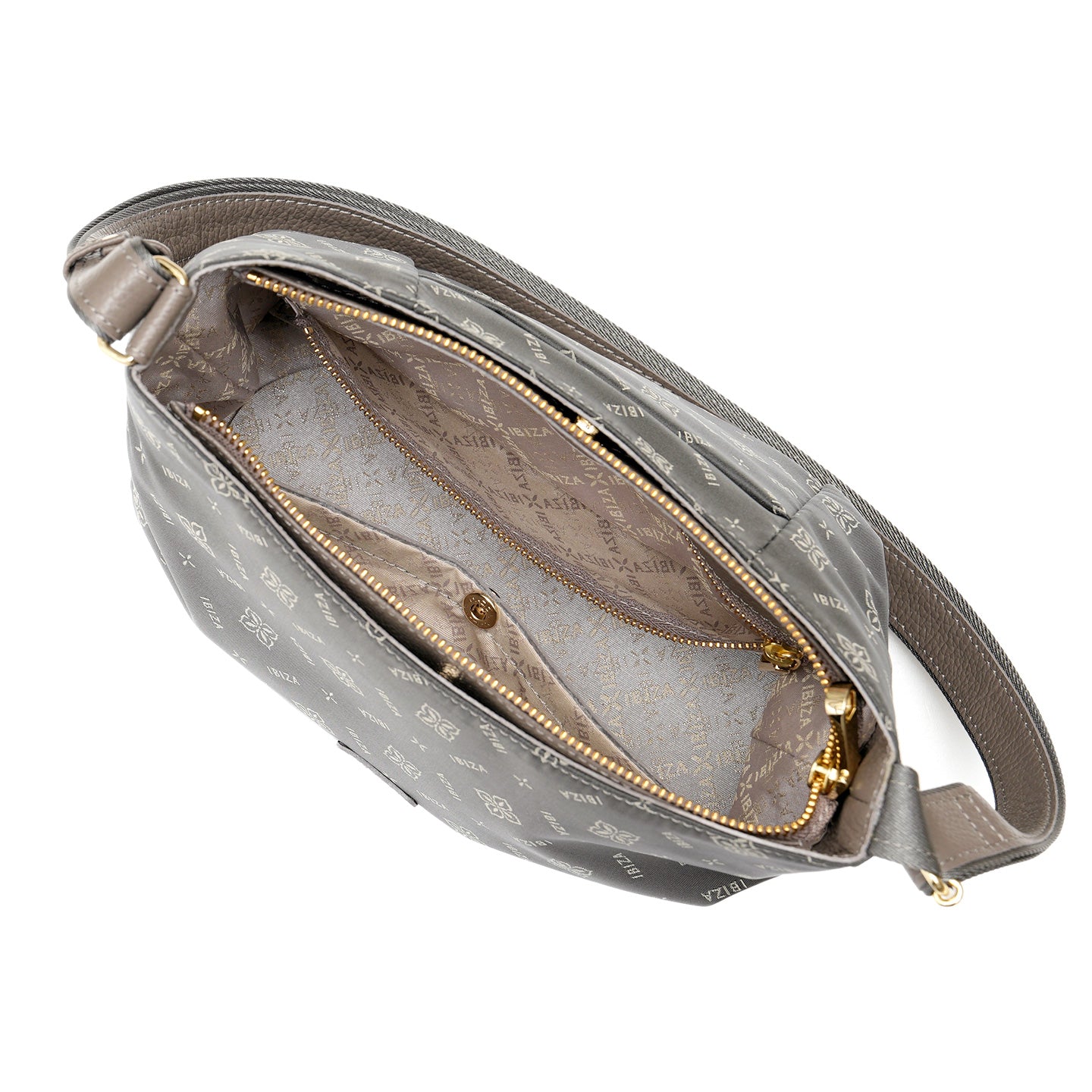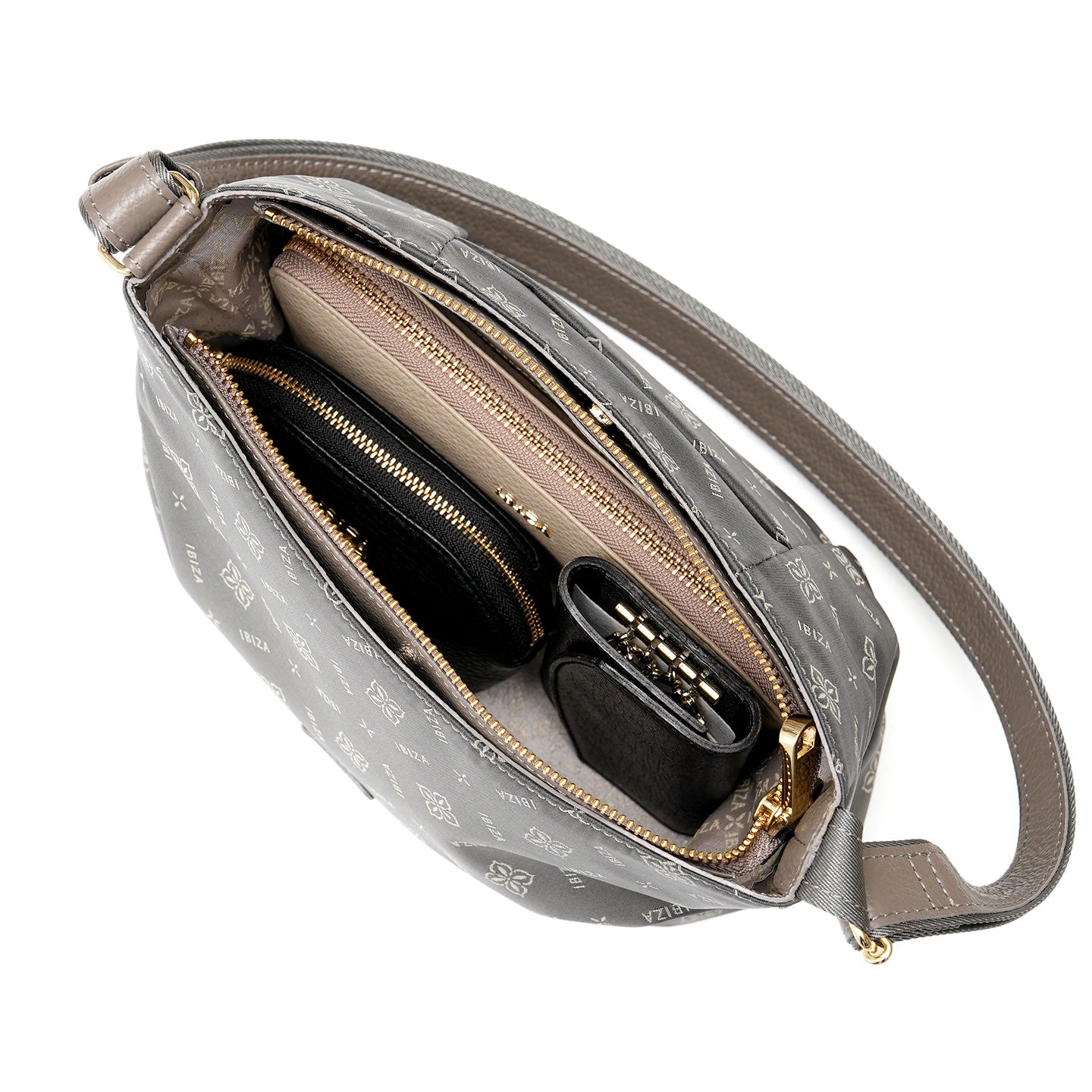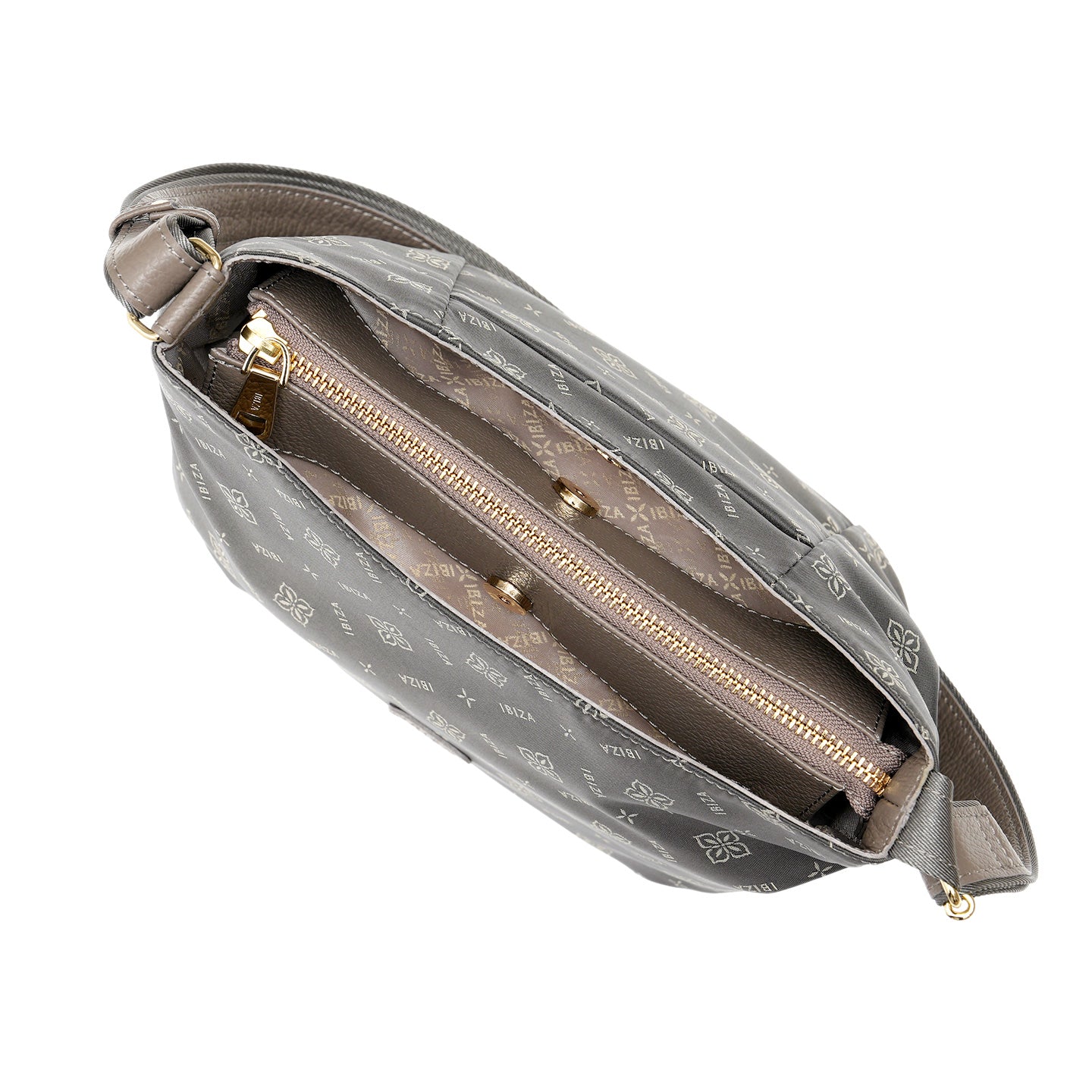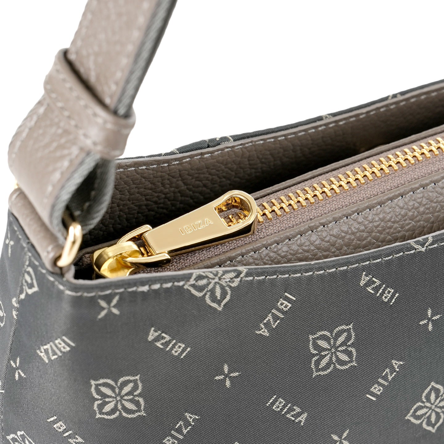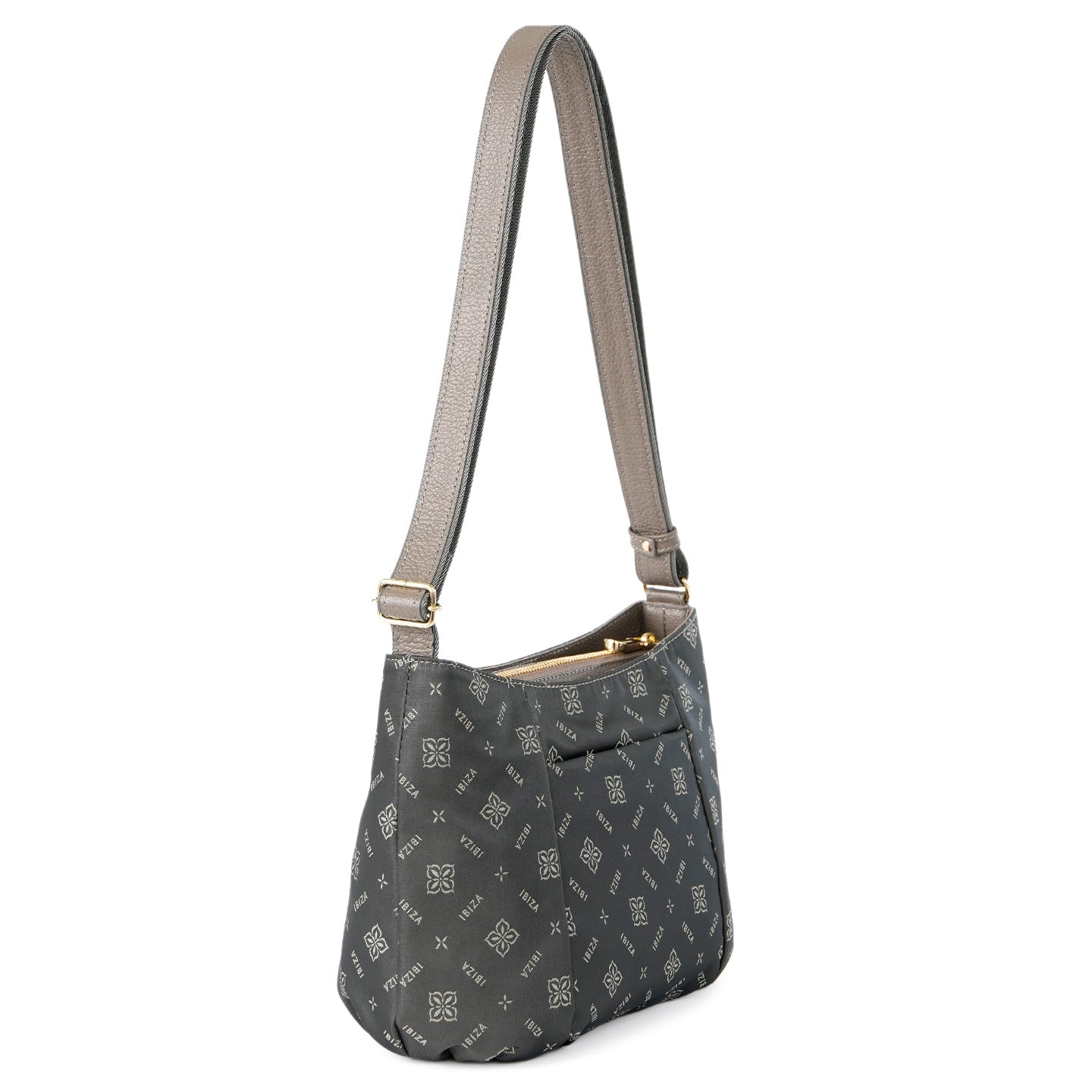 福井県で丁寧に織り上げたナイロンテキスタイルに、オリーブの花とブランドロゴを組み合わせたモノグラムを織り込んだショルダーバッグです。織り模様が生むさりげない艶感と、口周りの緩やかなカーブとタックを寄せた丸みのあるフォルムが、装いにやわらかさを添えてくれます。