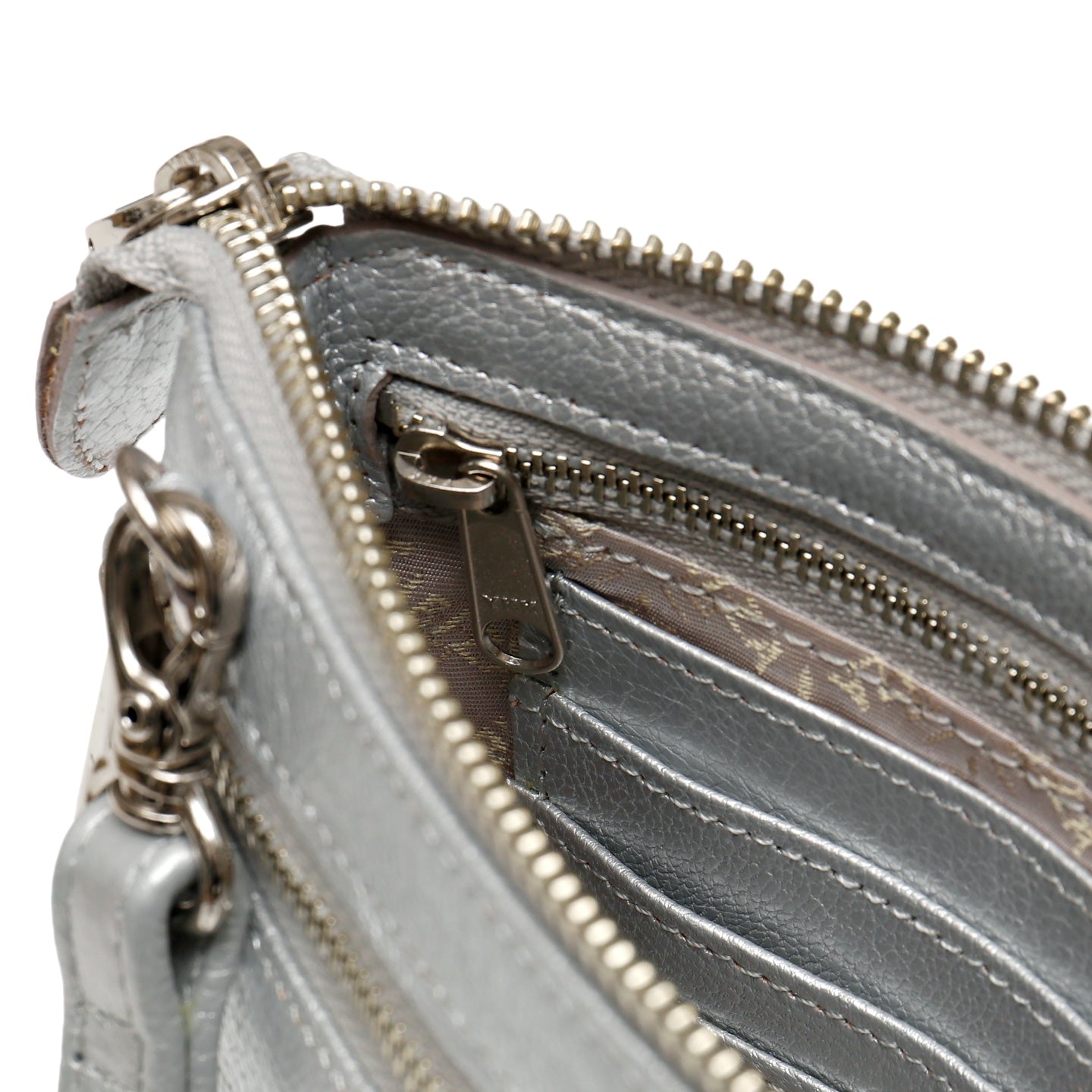 キャッシュレス時代に対応した薄型マルチポシェットの内部は計算されたつくりになっており、メイン収納に加え、3カ所のサブ収納、12枚のカードポケット、ファスナーポケットと充実。外側背面にもファスナーポケット、内部にはキーフックも付いて使用頻度の高い大切な物もしっかり収納できます。また、ポシェット紐を取り外して「マルチポーチ」としてもお使いいただけます。